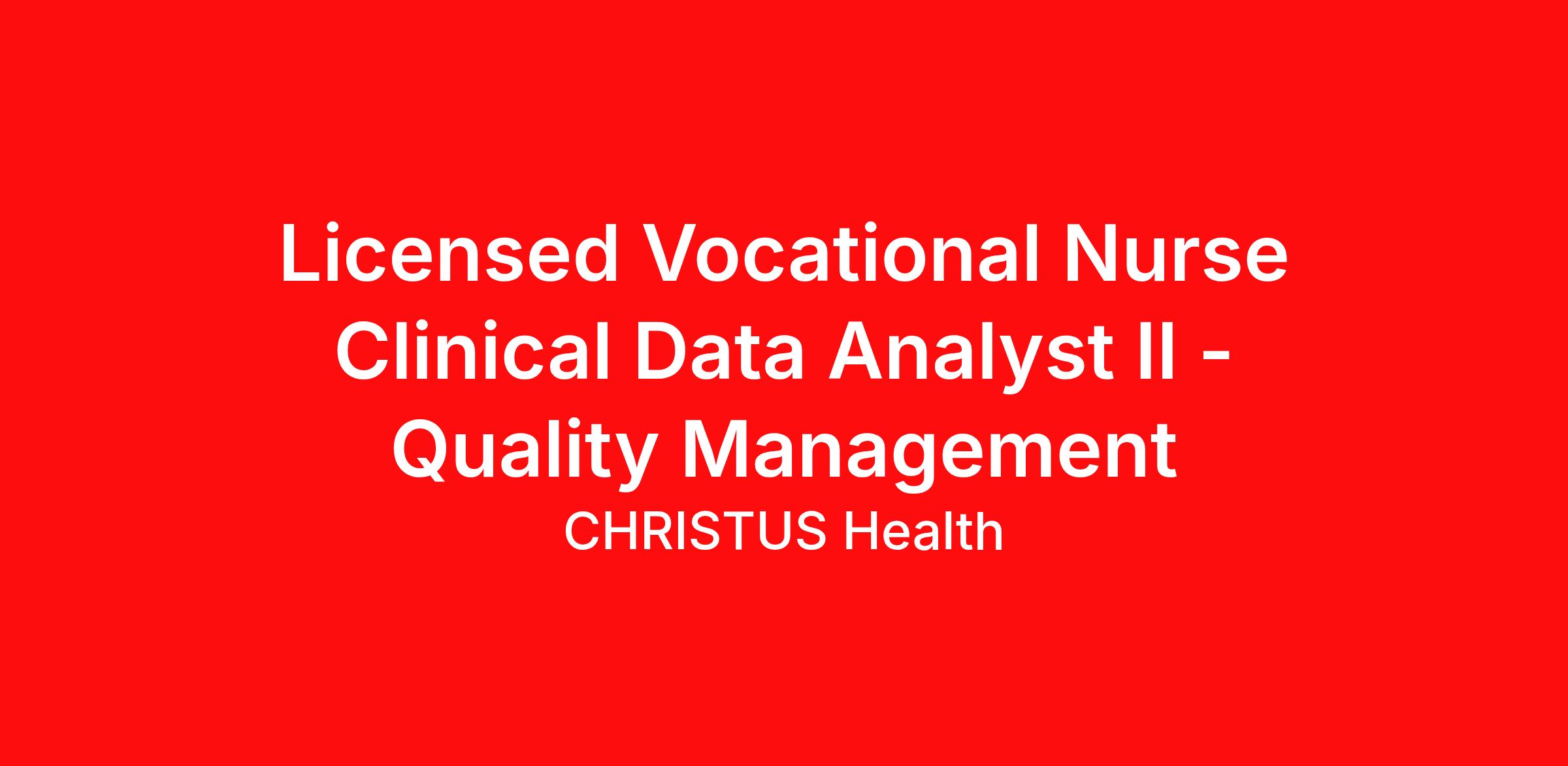 Licensed Vocational Nurse Clinical Data Analyst II - Quality Management