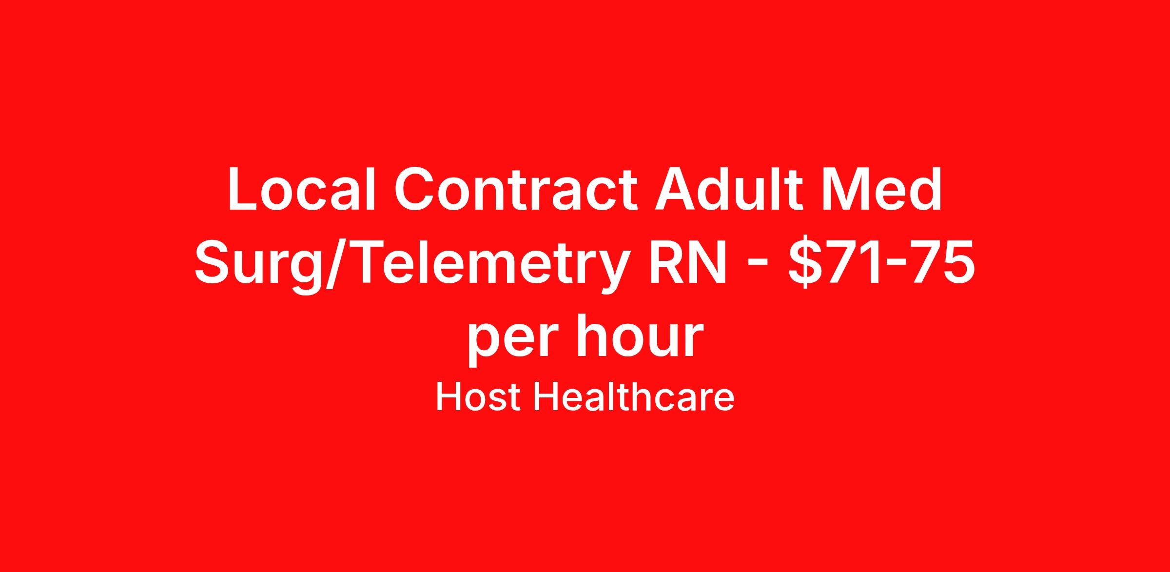 Local Contract Adult Med Surg/Telemetry RN - $71-75 per hour