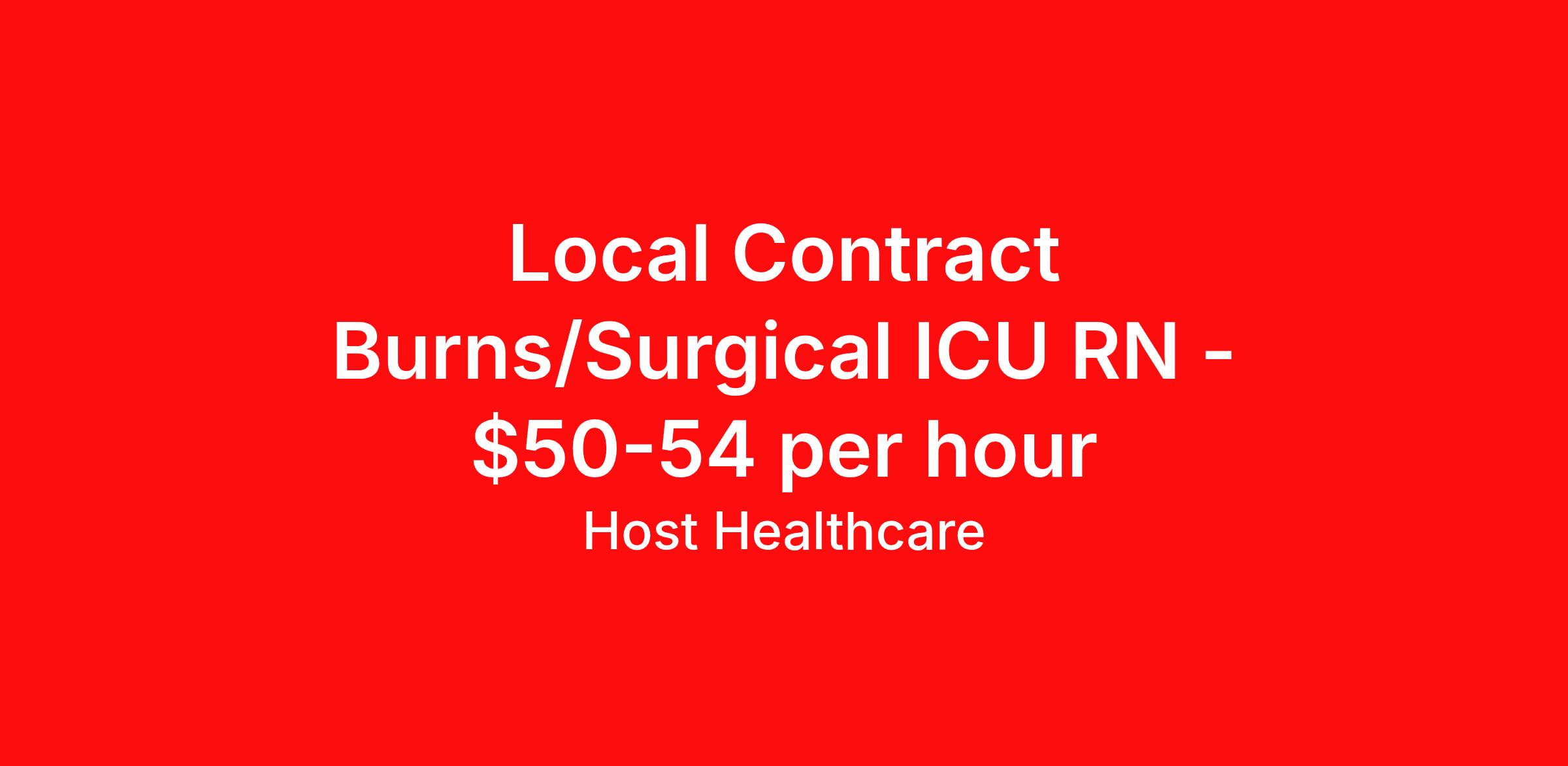 Host Healthcare is seeking a local contract nurse RN ICU - Intensive Care Unit for a local contract nursing job in Boston, Massachusetts. Job Description & Requirements Specialty: ICU - Intensive Care Unit Discipline: RN Start Date: 04/12/2026 Duration: 15 weeks 36 hours per week Shift: 12 hours Employment Type: Local Contract Host Healthcare Job ID La1fVX000002oVsKYAU. Pay package is based on 12 hour shifts and 36 hours per week (subject to confirmation) with tax-free stipend amount to be determined. Posted job title: RN - ICU About Host Healthcare At Host Healthcare, we provide a truly comfortable experience as you explore your travel nursing, therapy, or allied career. We make your travel healthcare journey easy by taking care of all the details, so you don’t have to. We are on a mission to help others live better and we do this by helping the healers of the world be as comfortable as possible. With access to tens of thousands of travel nursing, therapy, and allied jobs in all 50 states, our responsive and friendly recruiters find your dream position based on what’s important to you. During your assignment, get access to premium benefits, including Day 1 medical that continues up to 30 days between assignments, 401K matching, travel reimbursements, dedicated housing support, and more. We also offer 24/7 support from our team and access to our on-staff clinicians so you can feel comfortable and confident throughout your entire assignment. Travel comfortably with Host Healthcare. Benefits Referral bonus School loan reimbursement Vision benefits Wellness and fitness programs Company provided housing options License and certification reimbursement Life insurance Medical benefits Mileage reimbursement Pet insurance Discount program Employee assistance programs Guaranteed Hours Health savings account Holiday Pay 401k retirement plan Continuing Education Dental benefits