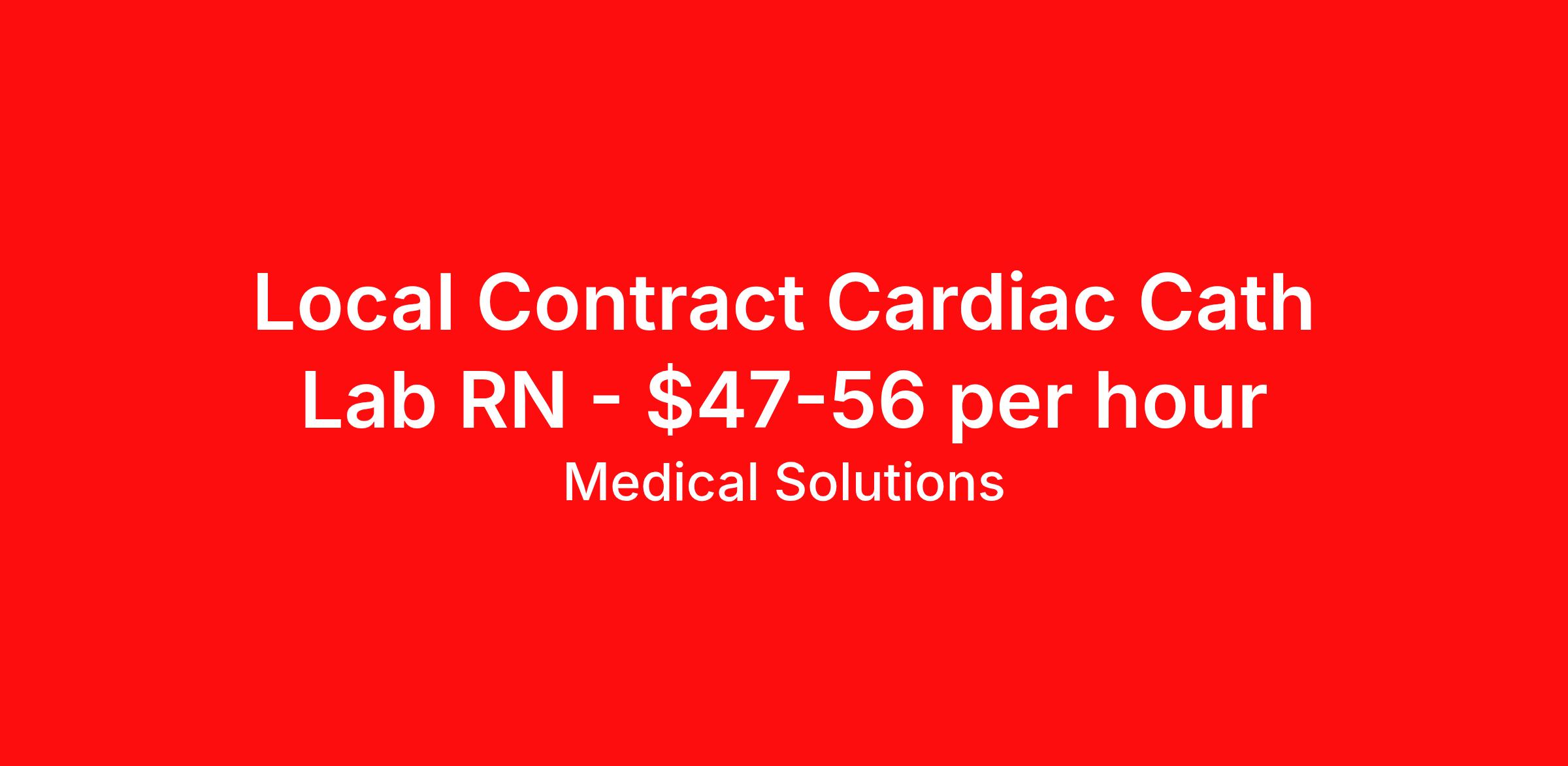 Medical Solutions is seeking a local contract nurse RN Cardiac Cath Lab for a local contract nursing job in Wilkes Barre, Pennsylvania. Job Description & Requirements Specialty: Cardiac Cath Lab Discipline: RN Duration: 13 weeks 40 hours per week Shift: 10 hours, days Employment Type: Local Contract We’re seeking talented healthcare professionals whose adventure game is as strong as their clinical game. Those that want flexibility and high pay, we have the positions for you! Some of the industry-leading benefits enjoyed by Medical Solutions travel nurses and travel allied healthcare professionals include: Day One Medical, Dental, and Vision with low premiums Day One 401(k) with Company Contribution Personalized Compensation Packages Paid, Private, Fully Furnished, Pet-Friendly Housing Dedicated Recruiter and 24/7 Customer Care Line Per Diem Allowance and Paid Travel Licensure and Certification Reimbursement Free Liability Coverage Voluntary Benefits: Critical Illness, Hospital Indemnity, Accident, and Pet Insurance Equal Employment Opportunity And More! Estimated pay package based on bill rate at time job was posted. Bill rates can change frequently and without notice. Exact pay package may vary based on guaranteed hours, distance being traveled, and customizations available for travelers. Medical Solutions Job ID 1068784L. Posted job title: Cardiac Cath Lab About Medical Solutions At Medical Solutions, we’re people who care, helping people who care. No matter how you look at it, there’s a whole lot of care going on in our world and that’s just the way we like it. What do we do? Medical Solutions is one of the nation’s largest providers of total workforce solutions in the healthcare industry, connecting nurses and allied health clinicians with hospitals and healthcare systems across the country and around the corner. Through our family of brands, we also serve a segment of clients outside of the healthcare space. And we’re the very best at what we do. You’ll love our culture that’s filled with heart and soul. As a company and employer, we’re sincerely and unabashedly us. We lead as humans first and believe the unique qualities of each team member make us better together. We share a purpose for helping others and the drive to make a difference. And we offer endless opportunities for personal and professional growth, throughout your career. At Medical Solutions, you’ll find a great place to work and a career home. We’ve received Best Places to Work awards, landed top industry awards, and received accolades for the impact we’ve made in business and within our community. But the only way to really get to know us, is to join us. We think you’ll fit right in. Benefits Weekly pay Holiday Pay Guaranteed Hours Continuing Education 401k retirement plan Pet insurance Company provided housing options Cancelation protection Wellness and fitness programs Mileage reimbursement Referral bonus Employee assistance programs Medical benefits Dental benefits Vision benefits Benefits start day 1 License and certification reimbursement Life insurance Discount program