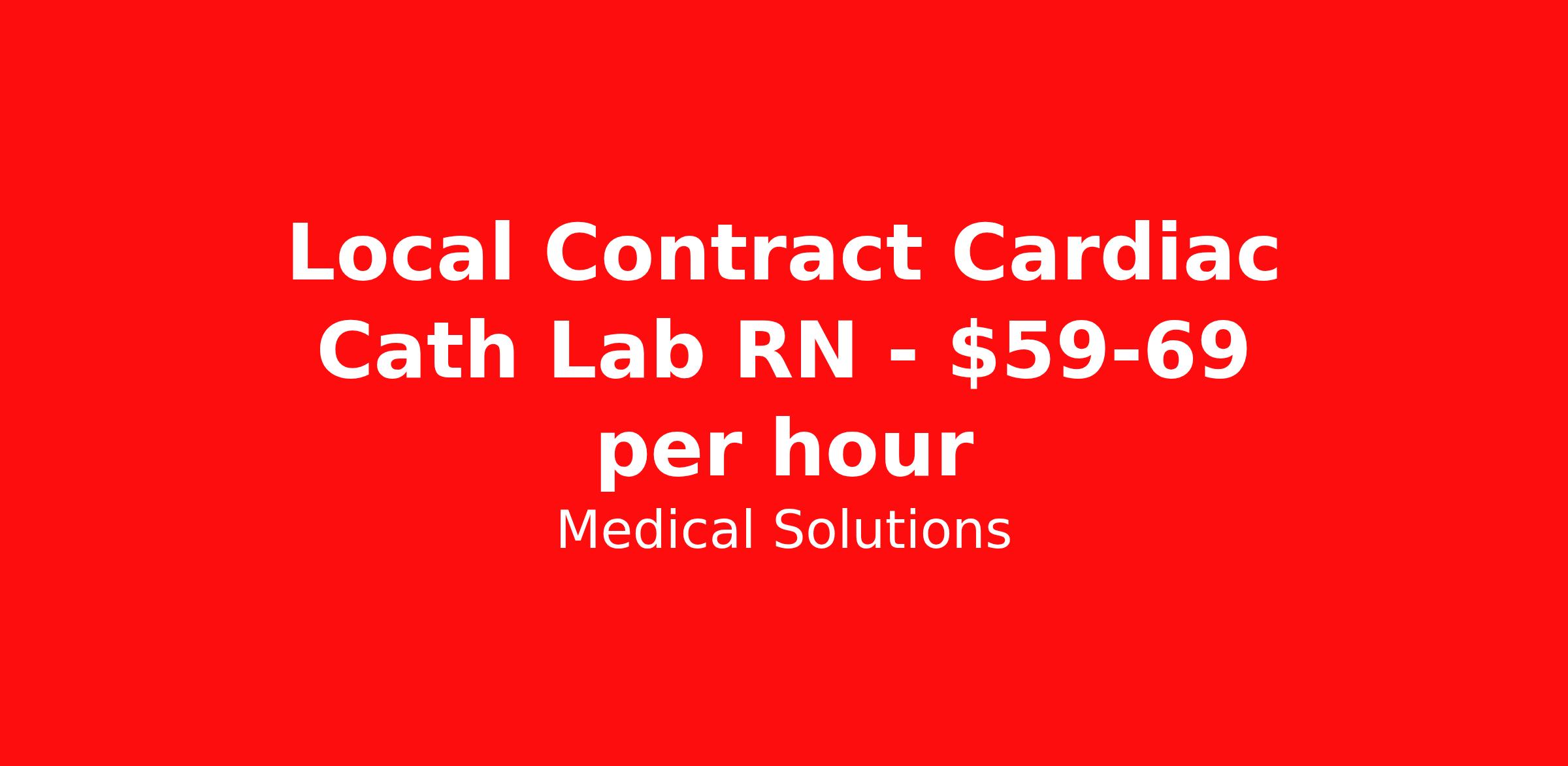 Medical Solutions is seeking a local contract nurse RN Cardiac Cath Lab for a local contract nursing job in Soldotna, Alaska. Job Description & Requirements Specialty: Cardiac Cath Lab Discipline: RN Duration: 16 weeks 40 hours per week Shift: 8 hours, days Employment Type: Local Contract We’re seeking talented healthcare professionals whose adventure game is as strong as their clinical game. Those that want flexibility and high pay, we have the positions for you! Some of the industry-leading benefits enjoyed by Medical Solutions travel nurses and travel allied healthcare professionals include: Day One Medical, Dental, and Vision with low premiums Day One 401(k) with Company Contribution Personalized Compensation Packages Paid, Private, Fully Furnished, Pet-Friendly Housing Dedicated Recruiter and 24/7 Customer Care Line Per Diem Allowance and Paid Travel Licensure and Certification Reimbursement Free Liability Coverage Voluntary Benefits: Critical Illness, Hospital Indemnity, Accident, and Pet Insurance Equal Employment Opportunity And More! Estimated pay package based on bill rate at time job was posted. Bill rates can change frequently and without notice. Exact pay package may vary based on guaranteed hours, distance being traveled, and customizations available for travelers. Performs the primary functions of a Registered Nurse in assessing, planning, implementing and evaluating the care of all patients in Cardiac Cath Lab Services during his or her shift. Is responsible for meeting the established standards of Intensive Nursing Practice, for managing all assigned personnel, supplies, and equipment in the unit, and for promoting teamwork with physicians and personnel of other departments. Under general supervision, performs professional nursing, technical and administrative duties as they relate to the cardiac services department as assigned. Perform circulate, scrub and hemodynamic monitoring duties with diagnostic and interventional cardiac procedures, interventional radiology procedures, holding area procedures, and Imaging Department nursing care support using clinical knowledge, technical skills and professional judgment in accordance with professional and departmental standards and protocols to include moderate sedation. Provides care, assessment prior, during and post-procedural care and instruction to patients. Prepares and maintains all pertinent information related to procedures. Call for more info Medical Solutions Job ID 1070342L. Posted job title: Cardiac Cath Lab About Medical Solutions At Medical Solutions, we’re people who care, helping people who care. No matter how you look at it, there’s a whole lot of care going on in our world and that’s just the way we like it. What do we do? Medical Solutions is one of the nation’s largest providers of total workforce solutions in the healthcare industry, connecting nurses and allied health clinicians with hospitals and healthcare systems across the country and around the corner. Through our family of brands, we also serve a segment of clients outside of the healthcare space. And we’re the very best at what we do. You’ll love our culture that’s filled with heart and soul. As a company and employer, we’re sincerely and unabashedly us. We lead as humans first and believe the unique qualities of each team member make us better together. We share a purpose for helping others and the drive to make a difference. And we offer endless opportunities for personal and professional growth, throughout your career. At Medical Solutions, you’ll find a great place to work and a career home. We’ve received Best Places to Work awards, landed top industry awards, and received accolades for the impact we’ve made in business and within our community. But the only way to really get to know us, is to join us. We think you’ll fit right in. Benefits Weekly pay Holiday Pay Guaranteed Hours Continuing Education 401k retirement plan Pet insurance Company provided housing options Cancelation protection Wellness and fitness programs Mileage reimbursement Referral bonus Employee assistance programs Medical benefits Dental benefits Vision benefits Benefits start day 1 License and certification reimbursement Life insurance Discount program