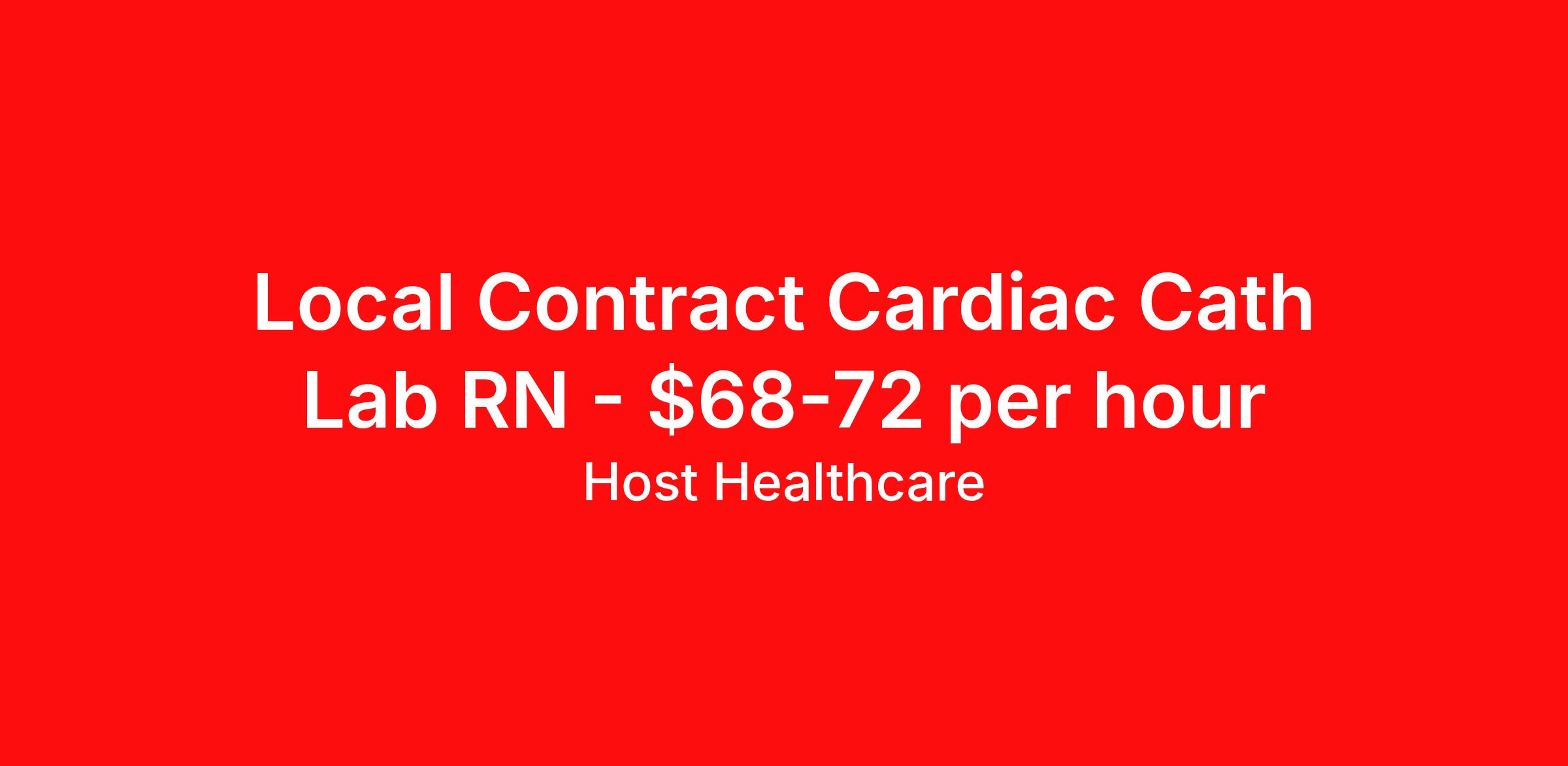Host Healthcare is seeking a local contract nurse RN Cardiac Cath Lab for a local contract nursing job in Denville, New Jersey. Job Description & Requirements Specialty: Cardiac Cath Lab Discipline: RN Start Date: 04/11/2026 Duration: 13 weeks 40 hours per week Shift: 10 hours, days Employment Type: Local Contract Host Healthcare Job ID La1fVJ000007cQogYAE. Pay package is based on 10 hour shifts and 40 hours per week (subject to confirmation) with tax-free stipend amount to be determined. Posted job title: RN - Cardiac Cath Lab About Host Healthcare At Host Healthcare, we provide a truly comfortable experience as you explore your travel nursing, therapy, or allied career. We make your travel healthcare journey easy by taking care of all the details, so you don’t have to. We are on a mission to help others live better and we do this by helping the healers of the world be as comfortable as possible. With access to tens of thousands of travel nursing, therapy, and allied jobs in all 50 states, our responsive and friendly recruiters find your dream position based on what’s important to you. During your assignment, get access to premium benefits, including Day 1 medical that continues up to 30 days between assignments, 401K matching, travel reimbursements, dedicated housing support, and more. We also offer 24/7 support from our team and access to our on-staff clinicians so you can feel comfortable and confident throughout your entire assignment. Travel comfortably with Host Healthcare. Benefits Referral bonus School loan reimbursement Vision benefits Wellness and fitness programs Company provided housing options License and certification reimbursement Life insurance Medical benefits Mileage reimbursement Pet insurance Discount program Employee assistance programs Guaranteed Hours Health savings account Holiday Pay 401k retirement plan Continuing Education Dental benefits