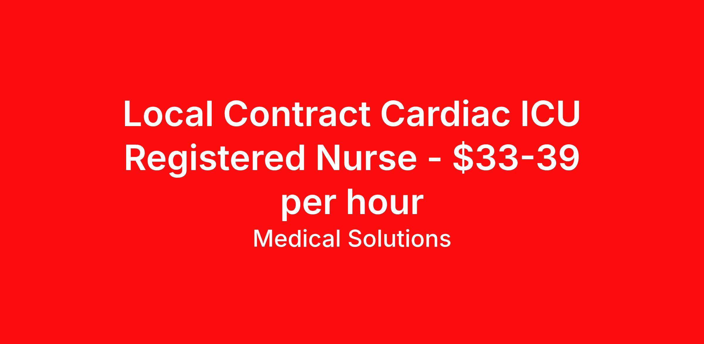 Medical Solutions is seeking a local contract nurse RN CVICU for a local contract nursing job in Wichita, Kansas. Job Description & Requirements Specialty: CVICU Discipline: RN Duration: 13 weeks 48 hours per week Shift: 12 hours, nights Employment Type: Local Contract We’re seeking talented healthcare professionals whose adventure game is as strong as their clinical game. Those that want flexibility and high pay, we have the positions for you! Some of the industry-leading benefits enjoyed by Medical Solutions travel nurses and travel allied healthcare professionals include: Day One Medical, Dental, and Vision with low premiums Day One 401(k) with Company Contribution Personalized Compensation Packages Paid, Private, Fully Furnished, Pet-Friendly Housing Dedicated Recruiter and 24/7 Customer Care Line Per Diem Allowance and Paid Travel Licensure and Certification Reimbursement Free Liability Coverage Voluntary Benefits: Critical Illness, Hospital Indemnity, Accident, and Pet Insurance Equal Employment Opportunity And More! Estimated pay package based on bill rate at time job was posted. Bill rates can change frequently and without notice. Exact pay package may vary based on guaranteed hours, distance being traveled, and customizations available for travelers. Medical Solutions Job ID 1011559L. Posted job title: Cardio IC (Cardiovascular Intensive Care) About Medical Solutions At Medical Solutions, we’re people who care, helping people who care. No matter how you look at it, there’s a whole lot of care going on in our world and that’s just the way we like it. What do we do? Medical Solutions is one of the nation’s largest providers of total workforce solutions in the healthcare industry, connecting nurses and allied health clinicians with hospitals and healthcare systems across the country and around the corner. Through our family of brands, we also serve a segment of clients outside of the healthcare space. And we’re the very best at what we do. You’ll love our culture that’s filled with heart and soul. As a company and employer, we’re sincerely and unabashedly us. We lead as humans first and believe the unique qualities of each team member make us better together. We share a purpose for helping others and the drive to make a difference. And we offer endless opportunities for personal and professional growth, throughout your career. At Medical Solutions, you’ll find a great place to work and a career home. We’ve received Best Places to Work awards, landed top industry awards, and received accolades for the impact we’ve made in business and within our community. But the only way to really get to know us, is to join us. We think you’ll fit right in. Benefits Weekly pay Holiday Pay Guaranteed Hours Continuing Education 401k retirement plan Pet insurance Company provided housing options Cancelation protection Wellness and fitness programs Mileage reimbursement Referral bonus Employee assistance programs Medical benefits Dental benefits Vision benefits Benefits start day 1 License and certification reimbursement Life insurance Discount program