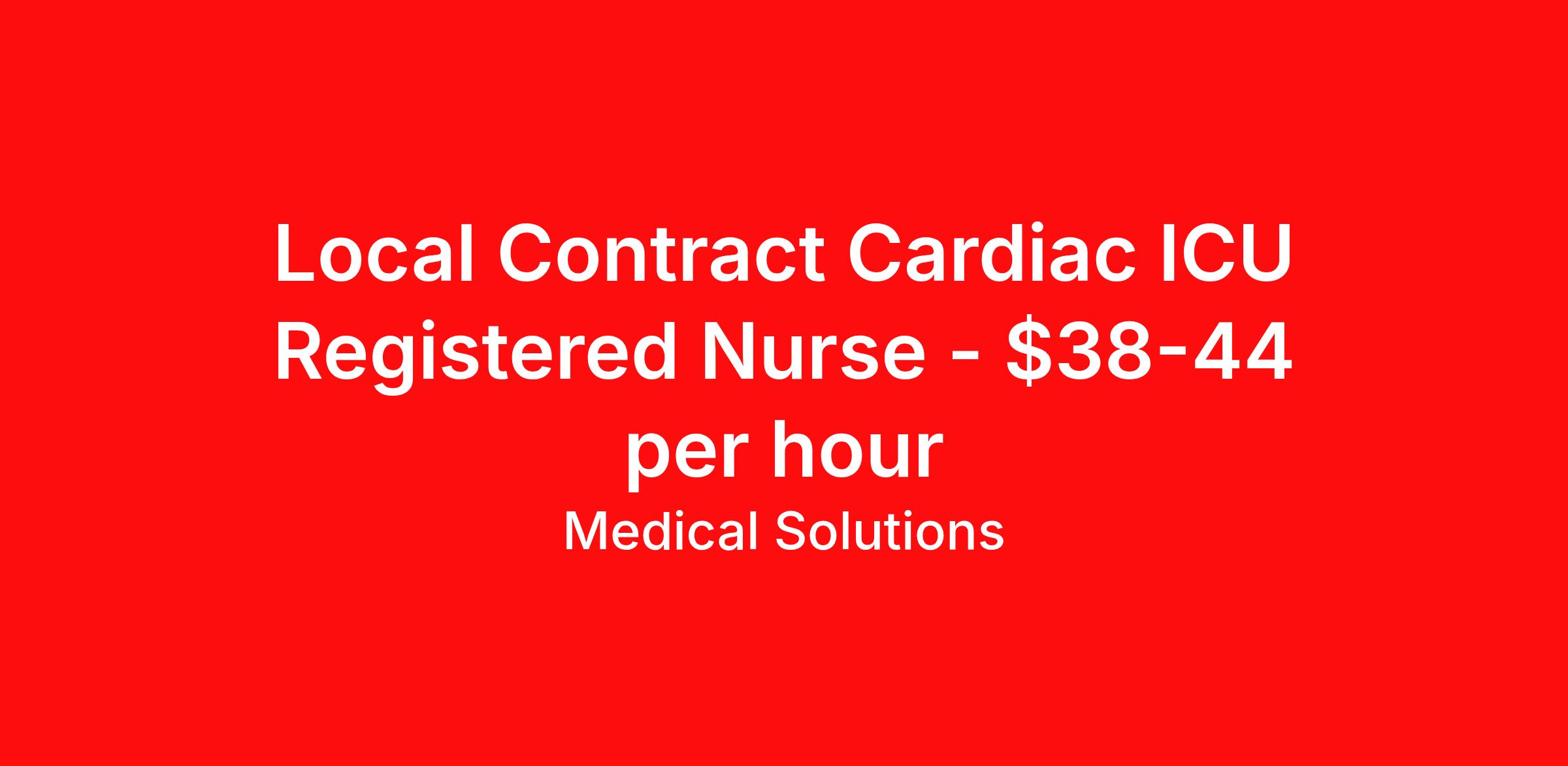 Medical Solutions is seeking a local contract nurse RN CVICU for a local contract nursing job in Evansville, Indiana. Job Description & Requirements Specialty: CVICU Discipline: RN Duration: 13 weeks 36 hours per week Shift: 12 hours, nights Employment Type: Local Contract We’re seeking talented healthcare professionals whose adventure game is as strong as their clinical game. Those that want flexibility and high pay, we have the positions for you! Some of the industry-leading benefits enjoyed by Medical Solutions travel nurses and travel allied healthcare professionals include: Day One Medical, Dental, and Vision with low premiums Day One 401(k) with Company Contribution Personalized Compensation Packages Paid, Private, Fully Furnished, Pet-Friendly Housing Dedicated Recruiter and 24/7 Customer Care Line Per Diem Allowance and Paid Travel Licensure and Certification Reimbursement Free Liability Coverage Voluntary Benefits: Critical Illness, Hospital Indemnity, Accident, and Pet Insurance Equal Employment Opportunity And More! Estimated pay package based on bill rate at time job was posted. Bill rates can change frequently and without notice. Exact pay package may vary based on guaranteed hours, distance being traveled, and customizations available for travelers. Medical Solutions Job ID 1070451L. Posted job title: Cardio IC (Cardiovascular Intensive Care) About Medical Solutions At Medical Solutions, we’re people who care, helping people who care. No matter how you look at it, there’s a whole lot of care going on in our world and that’s just the way we like it. What do we do? Medical Solutions is one of the nation’s largest providers of total workforce solutions in the healthcare industry, connecting nurses and allied health clinicians with hospitals and healthcare systems across the country and around the corner. Through our family of brands, we also serve a segment of clients outside of the healthcare space. And we’re the very best at what we do. You’ll love our culture that’s filled with heart and soul. As a company and employer, we’re sincerely and unabashedly us. We lead as humans first and believe the unique qualities of each team member make us better together. We share a purpose for helping others and the drive to make a difference. And we offer endless opportunities for personal and professional growth, throughout your career. At Medical Solutions, you’ll find a great place to work and a career home. We’ve received Best Places to Work awards, landed top industry awards, and received accolades for the impact we’ve made in business and within our community. But the only way to really get to know us, is to join us. We think you’ll fit right in. Benefits Weekly pay Holiday Pay Guaranteed Hours Continuing Education 401k retirement plan Pet insurance Company provided housing options Cancelation protection Wellness and fitness programs Mileage reimbursement Referral bonus Employee assistance programs Medical benefits Dental benefits Vision benefits Benefits start day 1 License and certification reimbursement Life insurance Discount program