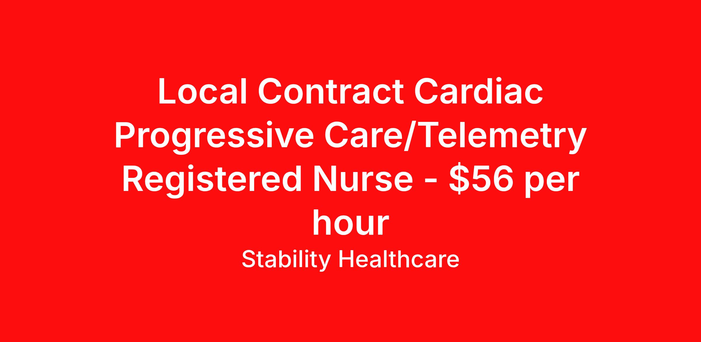 Local Contract Cardiac Progressive Care/Telemetry Registered Nurse - $56 per hour