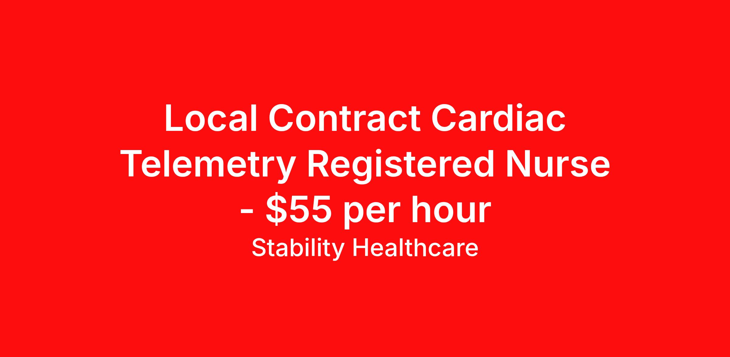 Stability Healthcare is seeking a local contract nurse RN Telemetry Med Surg for a local contract nursing job in Saint Louis, Missouri. Job Description & Requirements Specialty: Telemetry Discipline: RN Start Date: 04/20/2026 Duration: 13 weeks 36 hours per week Shift: 12 hours, nights Employment Type: Local Contract Stability Healthcare is looking for a Telemetry RN contract position in Saint Louis, MO. Telemetry nurses care for patients by using medical equipment to monitor blood pressure, heart rate, blood oxygen level, breathing rate, and other vital signs. Commonly, these patients have recently undergone surgery. *$600 travel bonus *Day 1 health insurance with United Healthcare *PTO plan start accruing on day 1, use during contract or cash out at the end! *Guaranteed stipend if facility calls you off *Extra hour bonus earn an additional hourly bonus for working over your weekly contracted hours Stability Job ID L-825304. Pay package is based on 12 hour shifts and 36 hours per week (subject to confirmation) with tax-free stipend amount to be determined. Posted job title: Telemetry About Stability Healthcare Stability Healthcare was founded in 2009, with the mission of becoming the best Travel Nursing Agency in California. We have been rated one of the top travel nursing agencies and offer our nurses the highest paying travel nursing jobs available. We have access to the best travel assignments from 1000’s of facilities. You can start the year off in sunny California, spend the Spring in the Colorado Rockies, enjoy the Summer in the Mid-West, experience the change of seasons in Boston and New York, and hit the beaches of Florida in the winter. Our Nurses work in the best hospitals and health systems in the country. Benefits Guaranteed Hours Benefits start day 1