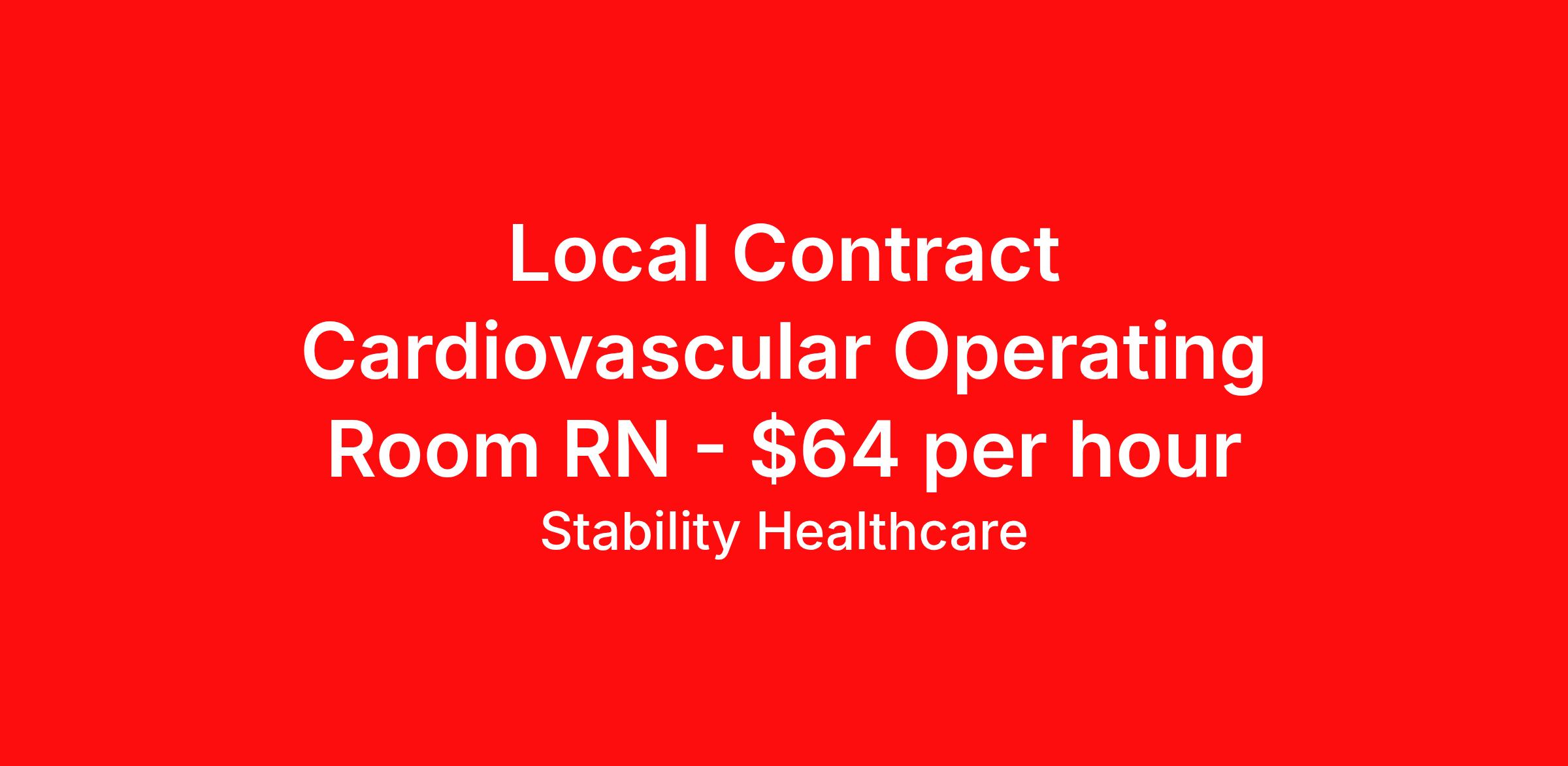 Stability Healthcare is seeking a local contract nurse RN CVOR for a local contract nursing job in Corvallis, Oregon. Job Description & Requirements Specialty: CVOR Discipline: RN Duration: 13 weeks 40 hours per week Shift: 8 hours, flexible Employment Type: Local Contract Stability Healthcare is looking for a CVOR RN contract position in Corvallis, OR. CVOR nurse jobs focus on the treatment of cardiovascular patients, including operating bypass machines and administering anesthesia. They care for cardiovascular patients before, during and following surgical procedures. *$600 travel bonus *Day 1 health insurance with United Healthcare *PTO plan start accruing on day 1, use during contract or cash out at the end! *Guaranteed stipend if facility calls you off *Extra hour bonus earn an additional hourly bonus for working over your weekly contracted hours Stability Job ID L-827455. Pay package is based on 8 hour shifts and 40 hours per week (subject to confirmation) with tax-free stipend amount to be determined. Posted job title: CVOR About Stability Healthcare Stability Healthcare was founded in 2009, with the mission of becoming the best Travel Nursing Agency in California. We have been rated one of the top travel nursing agencies and offer our nurses the highest paying travel nursing jobs available. We have access to the best travel assignments from 1000’s of facilities. You can start the year off in sunny California, spend the Spring in the Colorado Rockies, enjoy the Summer in the Mid-West, experience the change of seasons in Boston and New York, and hit the beaches of Florida in the winter. Our Nurses work in the best hospitals and health systems in the country. Benefits Guaranteed Hours Benefits start day 1