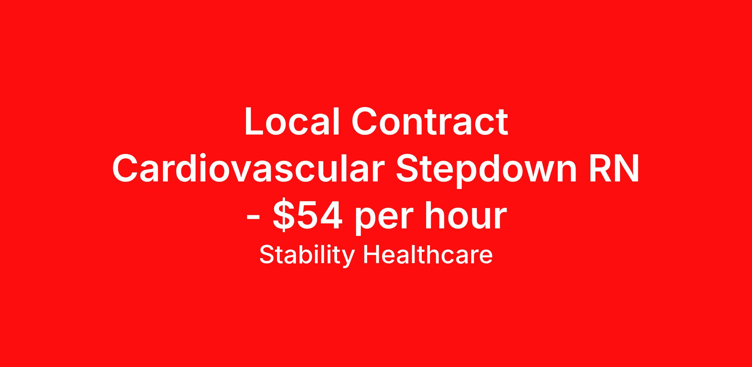 Stability Healthcare is seeking a local contract nurse RN Cardiac Stepdown for a local contract nursing job in Evansville, Indiana. Job Description & Requirements Specialty: Cardiac Stepdown Discipline: RN Duration: 13 weeks 36 hours per week Shift: 12 hours, nights Employment Type: Local Contract Stability Healthcare is looking for a Tele Step-Down RN contract position in Evansville, IN. The PCU nurse is sometimes also called a step-down nurse and the PCU is also known as cardiac stepdown, medical stepdown, neuro stepdown, surgical stepdown and ER holding. PCU nursing jobs traditionally operate between the levels of general and ICU care, and more recently, in the field of critical care, as well. *$600 travel bonus *Day 1 health insurance with United Healthcare *PTO plan start accruing on day 1, use during contract or cash out at the end! *Guaranteed stipend if facility calls you off *Extra hour bonus earn an additional hourly bonus for working over your weekly contracted hours Stability Job ID L-807329. Pay package is based on 12 hour shifts and 36 hours per week (subject to confirmation) with tax-free stipend amount to be determined. Posted job title: Tele Step-Down About Stability Healthcare Stability Healthcare was founded in 2009, with the mission of becoming the best Travel Nursing Agency in California. We have been rated one of the top travel nursing agencies and offer our nurses the highest paying travel nursing jobs available. We have access to the best travel assignments from 1000’s of facilities. You can start the year off in sunny California, spend the Spring in the Colorado Rockies, enjoy the Summer in the Mid-West, experience the change of seasons in Boston and New York, and hit the beaches of Florida in the winter. Our Nurses work in the best hospitals and health systems in the country. Benefits Guaranteed Hours Benefits start day 1