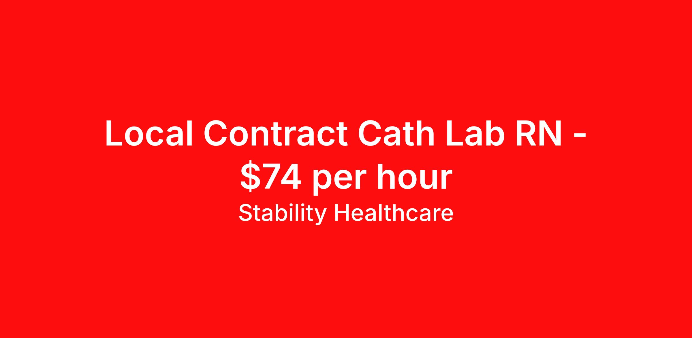 Stability Healthcare is seeking a local contract nurse RN Cardiac Cath Lab for a local contract nursing job in Kansas City, Missouri. Job Description & Requirements Specialty: Cardiac Cath Lab Discipline: RN Duration: 13 weeks 40 hours per week Shift: 8 hours, days Employment Type: Local Contract Stability Healthcare is looking for a Cath Lab RN contract position in Kansas City, MO. Cath lab nurses care for patients while they are undergoing different procedures in a cath lab. Nurses who work in the cardiac catheterization lab (CCL) will assist the doctor in performing interventional procedures like cardiac catheterizations, valvuloplasties, and angioplasties. *$600 travel bonus *Day 1 health insurance with United Healthcare *PTO plan start accruing on day 1, use during contract or cash out at the end! *Guaranteed stipend if facility calls you off *Extra hour bonus earn an additional hourly bonus for working over your weekly contracted hours Stability Job ID L-838154. Pay package is based on 8 hour shifts and 40 hours per week (subject to confirmation) with tax-free stipend amount to be determined. Posted job title: Cath Lab About Stability Healthcare Stability Healthcare was founded in 2009, with the mission of becoming the best Travel Nursing Agency in California. We have been rated one of the top travel nursing agencies and offer our nurses the highest paying travel nursing jobs available. We have access to the best travel assignments from 1000’s of facilities. You can start the year off in sunny California, spend the Spring in the Colorado Rockies, enjoy the Summer in the Mid-West, experience the change of seasons in Boston and New York, and hit the beaches of Florida in the winter. Our Nurses work in the best hospitals and health systems in the country. Benefits Guaranteed Hours Benefits start day 1