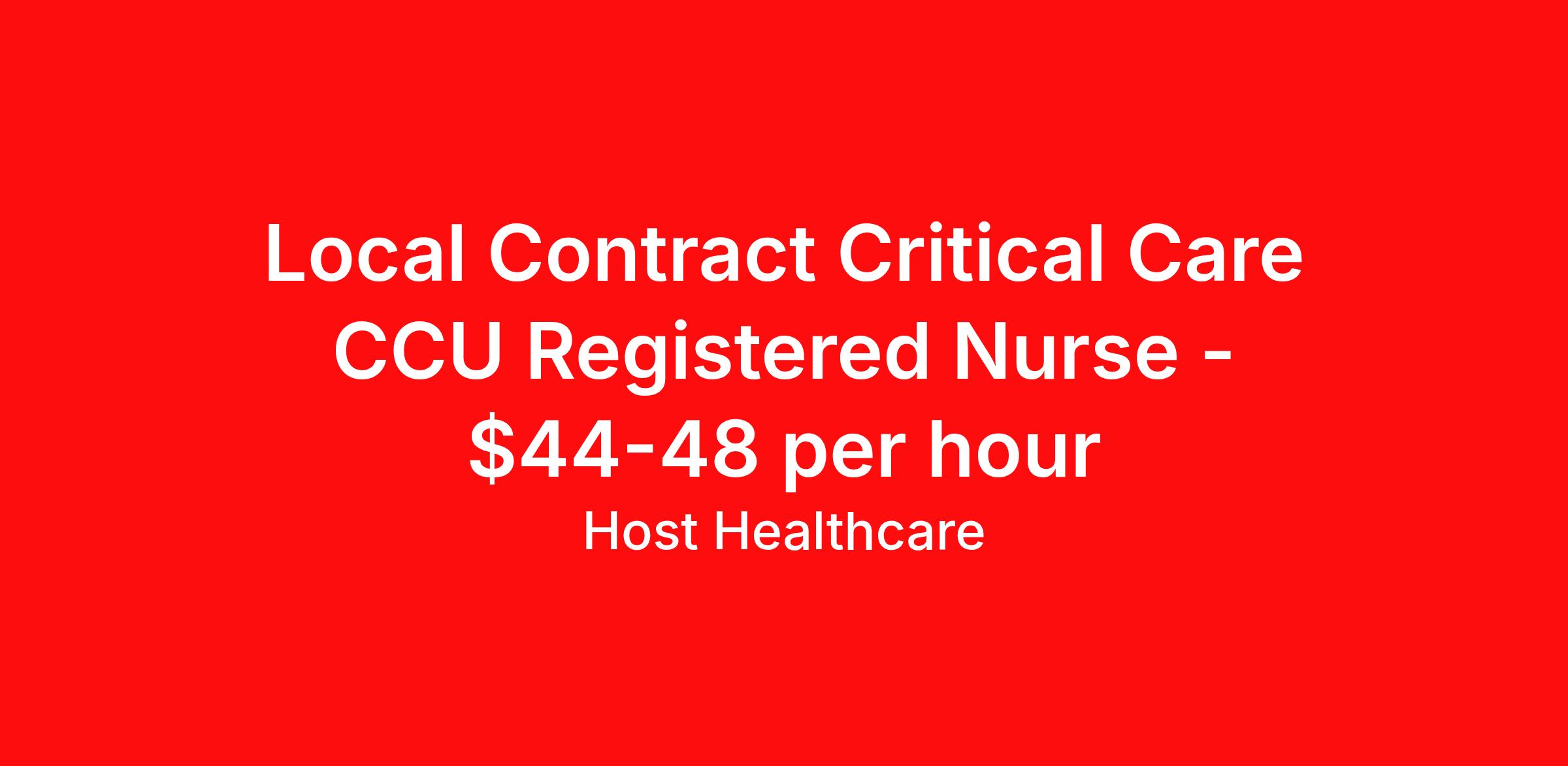 Local Contract Critical Care CCU Registered Nurse - $44-48 per hour