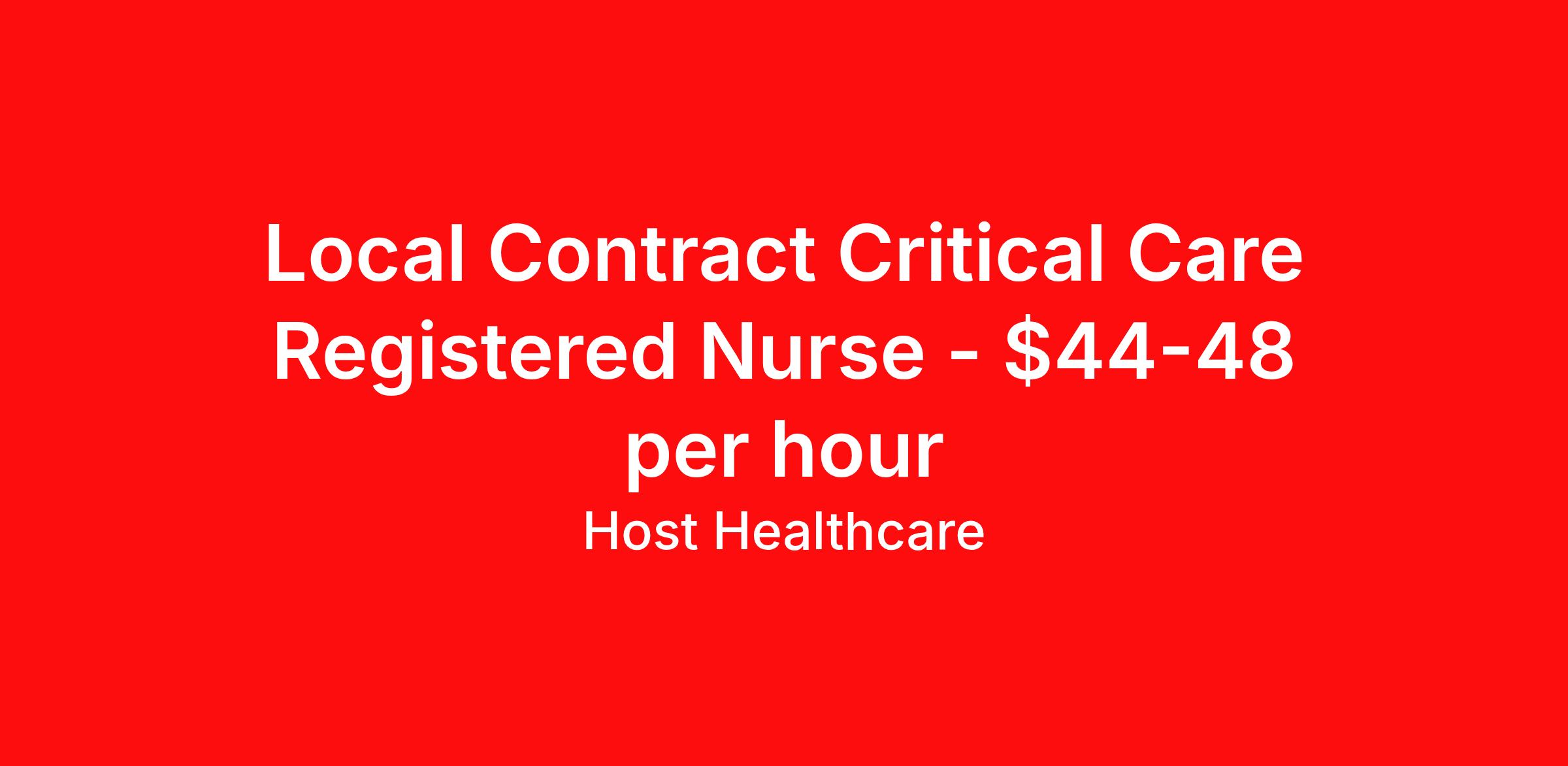 Local Contract Critical Care Registered Nurse - $44-48 per hour