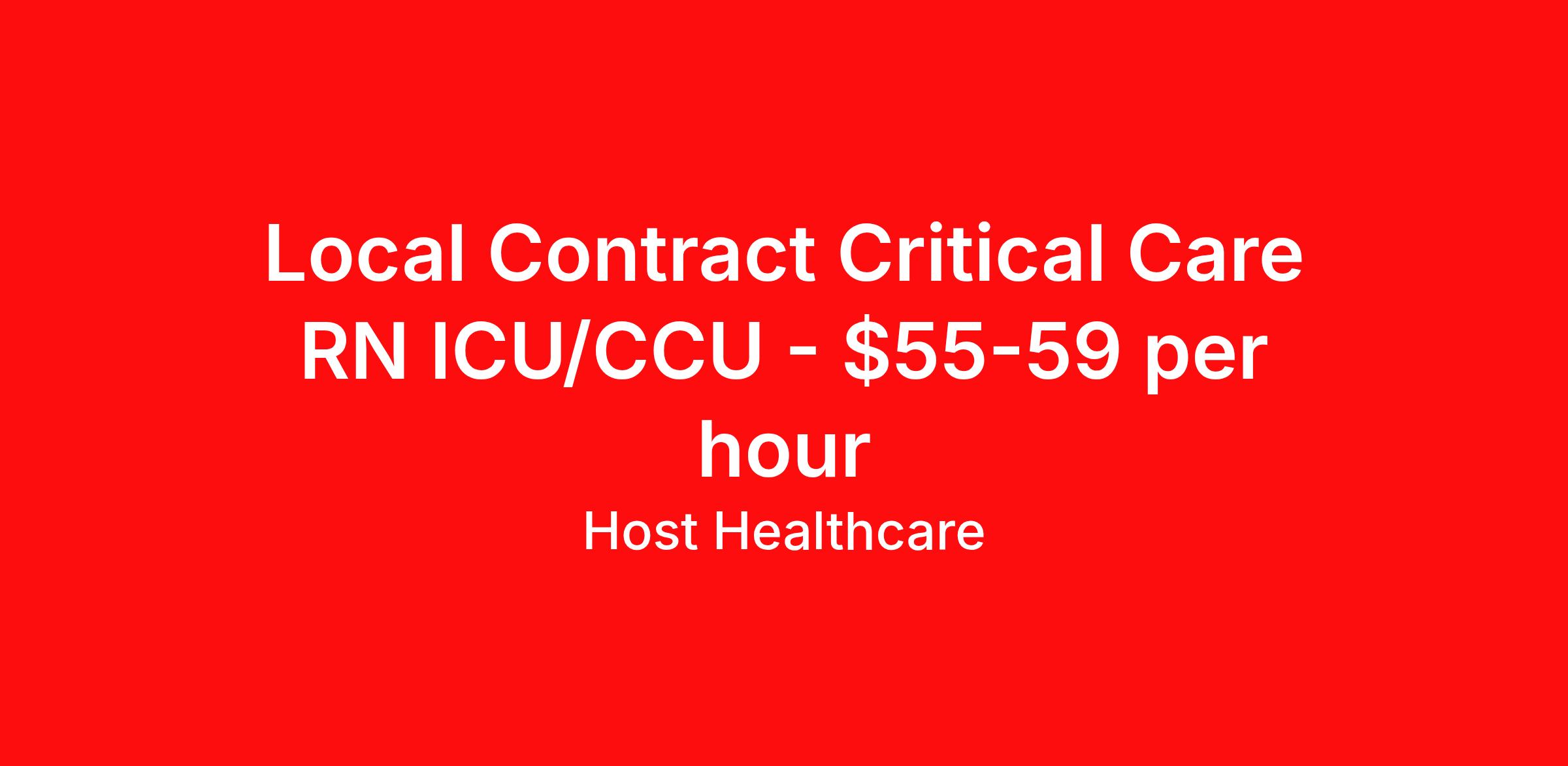 Host Healthcare is seeking a local contract nurse RN ICU - Intensive Care Unit for a local contract nursing job in Burlington, Iowa. Job Description & Requirements Specialty: ICU - Intensive Care Unit Discipline: RN Start Date: 03/23/2026 Duration: 13 weeks 36 hours per week Shift: 12 hours, nights Employment Type: Local Contract Host Healthcare Job ID La1fVX000002d6cHYAQ. Pay package is based on 12 hour shifts and 36 hours per week (subject to confirmation) with tax-free stipend amount to be determined. Posted job title: RN - ICU About Host Healthcare At Host Healthcare, we provide a truly comfortable experience as you explore your travel nursing, therapy, or allied career. We make your travel healthcare journey easy by taking care of all the details, so you don’t have to. We are on a mission to help others live better and we do this by helping the healers of the world be as comfortable as possible. With access to tens of thousands of travel nursing, therapy, and allied jobs in all 50 states, our responsive and friendly recruiters find your dream position based on what’s important to you. During your assignment, get access to premium benefits, including Day 1 medical that continues up to 30 days between assignments, 401K matching, travel reimbursements, dedicated housing support, and more. We also offer 24/7 support from our team and access to our on-staff clinicians so you can feel comfortable and confident throughout your entire assignment. Travel comfortably with Host Healthcare. Benefits Referral bonus School loan reimbursement Vision benefits Wellness and fitness programs Company provided housing options License and certification reimbursement Life insurance Medical benefits Mileage reimbursement Pet insurance Discount program Employee assistance programs Guaranteed Hours Health savings account Holiday Pay 401k retirement plan Continuing Education Dental benefits