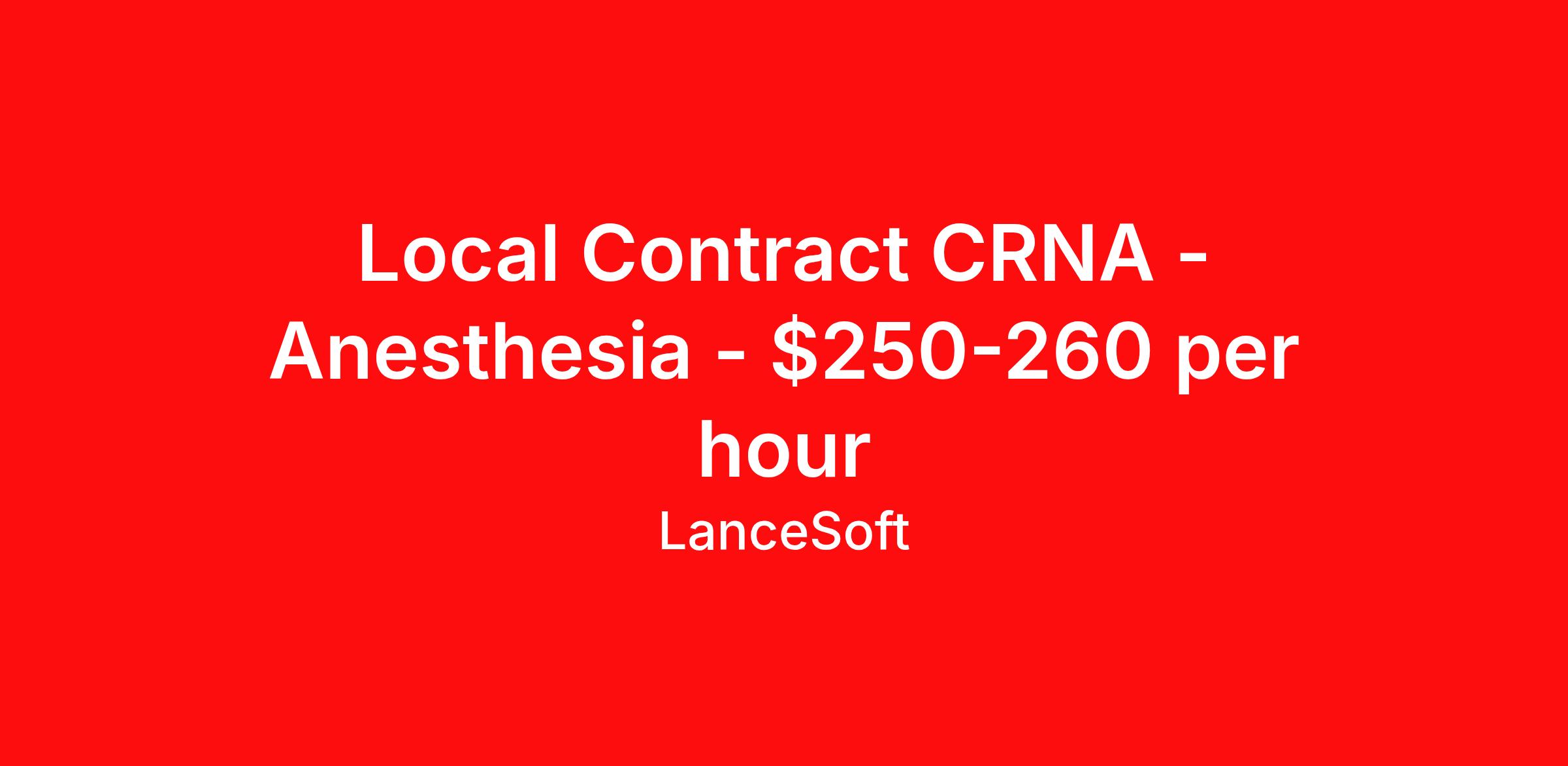 Local Contract CRNA - Anesthesia - $250-260 per hour