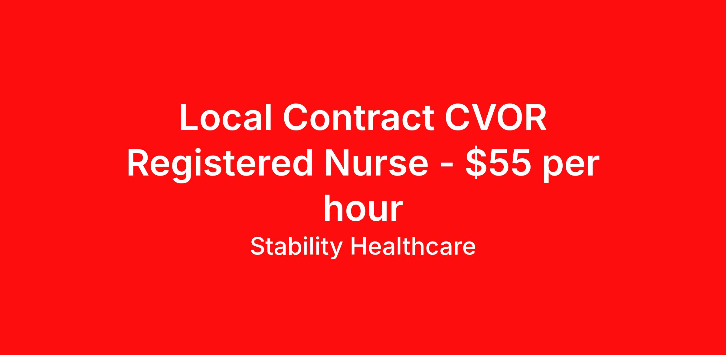 Stability Healthcare is seeking a local contract nurse RN CVOR for a local contract nursing job in Weston, Florida. Job Description & Requirements Specialty: CVOR Discipline: RN Start Date: 04/20/2026 Duration: 13 weeks 40 hours per week Shift: 10 hours, days Employment Type: Local Contract Stability Healthcare is looking for a CVOR RN contract position in Weston, FL. CVOR nurse jobs focus on the treatment of cardiovascular patients, including operating bypass machines and administering anesthesia. They care for cardiovascular patients before, during and following surgical procedures. *$600 travel bonus *Day 1 health insurance with United Healthcare *PTO plan start accruing on day 1, use during contract or cash out at the end! *Guaranteed stipend if facility calls you off *Extra hour bonus earn an additional hourly bonus for working over your weekly contracted hours Stability Job ID L-827637. Pay package is based on 10 hour shifts and 40 hours per week (subject to confirmation) with tax-free stipend amount to be determined. Posted job title: CVOR About Stability Healthcare Stability Healthcare was founded in 2009, with the mission of becoming the best Travel Nursing Agency in California. We have been rated one of the top travel nursing agencies and offer our nurses the highest paying travel nursing jobs available. We have access to the best travel assignments from 1000’s of facilities. You can start the year off in sunny California, spend the Spring in the Colorado Rockies, enjoy the Summer in the Mid-West, experience the change of seasons in Boston and New York, and hit the beaches of Florida in the winter. Our Nurses work in the best hospitals and health systems in the country. Benefits Guaranteed Hours Benefits start day 1