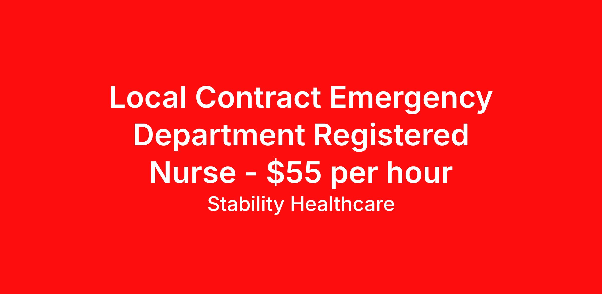 Stability Healthcare is seeking a local contract nurse RN ED - Emergency Department for a local contract nursing job in La Plata, Maryland. Job Description & Requirements Specialty: ED - Emergency Department Discipline: RN Duration: 13 weeks 36 hours per week Shift: 12 hours, nights Employment Type: Local Contract Stability Healthcare is looking for a ER RN contract position in La Plata, MD. Emergency room (ER) nurses provide care for patients requiring emergency attention because of physical trauma or acute illness. ER nurses work to quickly assess the needs of each patient to avoid long-term complications, disabilities, or even death. *$600 travel bonus *Day 1 health insurance with United Healthcare *PTO plan start accruing on day 1, use during contract or cash out at the end! *Guaranteed stipend if facility calls you off *Extra hour bonus earn an additional hourly bonus for working over your weekly contracted hours Stability Job ID L-827011. Pay package is based on 12 hour shifts and 36 hours per week (subject to confirmation) with tax-free stipend amount to be determined. Posted job title: ER About Stability Healthcare Stability Healthcare was founded in 2009, with the mission of becoming the best Travel Nursing Agency in California. We have been rated one of the top travel nursing agencies and offer our nurses the highest paying travel nursing jobs available. We have access to the best travel assignments from 1000’s of facilities. You can start the year off in sunny California, spend the Spring in the Colorado Rockies, enjoy the Summer in the Mid-West, experience the change of seasons in Boston and New York, and hit the beaches of Florida in the winter. Our Nurses work in the best hospitals and health systems in the country. Benefits Guaranteed Hours Benefits start day 1