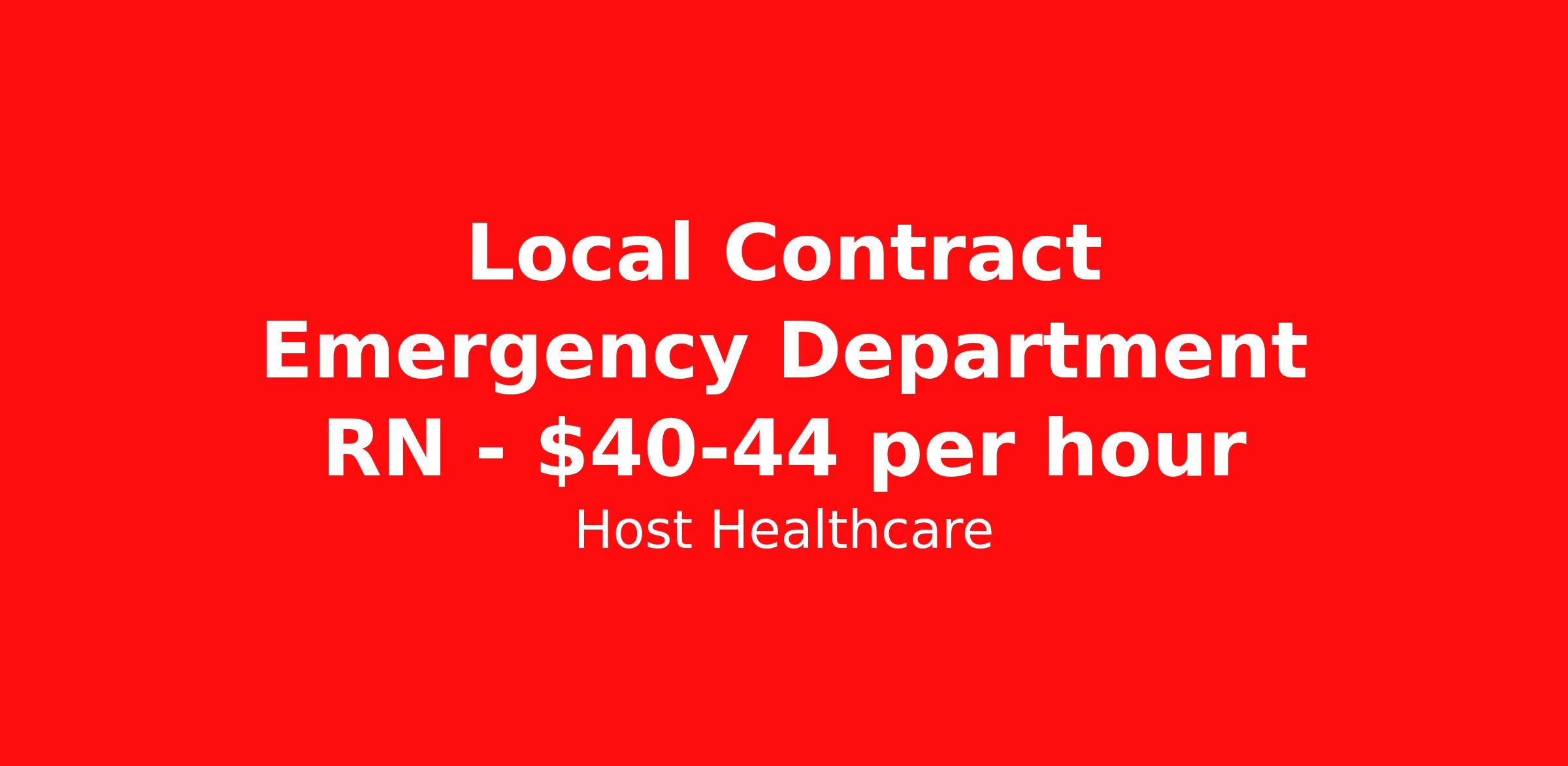 Host Healthcare is seeking a local contract nurse RN ED - Emergency Department for a local contract nursing job in Sanford, North Carolina. Job Description & Requirements Specialty: ED - Emergency Department Discipline: RN Start Date: 04/05/2026 Duration: 13 weeks 36 hours per week Shift: 12 hours, nights Employment Type: Local Contract Host Healthcare Job ID La1fVX000002xDPtYAM. Pay package is based on 12 hour shifts and 36 hours per week (subject to confirmation) with tax-free stipend amount to be determined. Posted job title: RN - Emergency Room About Host Healthcare At Host Healthcare, we provide a truly comfortable experience as you explore your travel nursing, therapy, or allied career. We make your travel healthcare journey easy by taking care of all the details, so you don’t have to. We are on a mission to help others live better and we do this by helping the healers of the world be as comfortable as possible. With access to tens of thousands of travel nursing, therapy, and allied jobs in all 50 states, our responsive and friendly recruiters find your dream position based on what’s important to you. During your assignment, get access to premium benefits, including Day 1 medical that continues up to 30 days between assignments, 401K matching, travel reimbursements, dedicated housing support, and more. We also offer 24/7 support from our team and access to our on-staff clinicians so you can feel comfortable and confident throughout your entire assignment. Travel comfortably with Host Healthcare. Benefits Referral bonus School loan reimbursement Vision benefits Wellness and fitness programs Company provided housing options License and certification reimbursement Life insurance Medical benefits Mileage reimbursement Pet insurance Discount program Employee assistance programs Guaranteed Hours Health savings account Holiday Pay 401k retirement plan Continuing Education Dental benefits