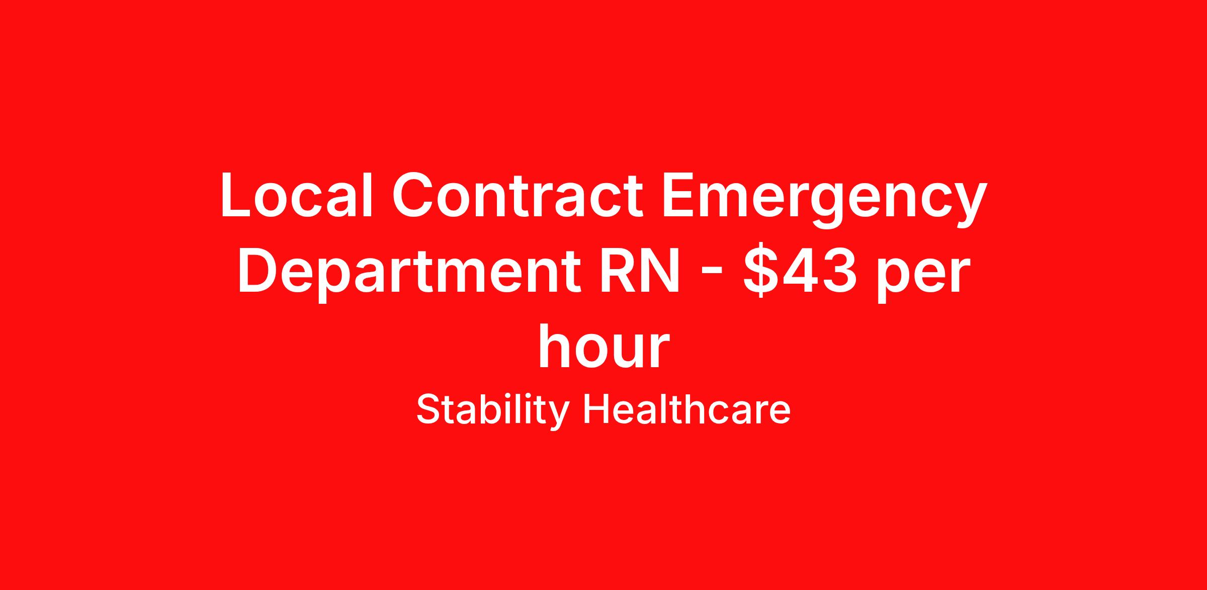 Stability Healthcare is seeking a local contract nurse RN ED - Emergency Department for a local contract nursing job in Sanford, North Carolina. Job Description & Requirements Specialty: ED - Emergency Department Discipline: RN Duration: 13 weeks 36 hours per week Shift: 12 hours, nights Employment Type: Local Contract Stability Healthcare is looking for a ER RN contract position in Sanford, NC. Emergency room (ER) nurses provide care for patients requiring emergency attention because of physical trauma or acute illness. ER nurses work to quickly assess the needs of each patient to avoid long-term complications, disabilities, or even death. *$600 travel bonus *Day 1 health insurance with United Healthcare *PTO plan start accruing on day 1, use during contract or cash out at the end! *Guaranteed stipend if facility calls you off *Extra hour bonus earn an additional hourly bonus for working over your weekly contracted hours Stability Job ID L-828213. Pay package is based on 12 hour shifts and 36 hours per week (subject to confirmation) with tax-free stipend amount to be determined. Posted job title: ER About Stability Healthcare Stability Healthcare was founded in 2009, with the mission of becoming the best Travel Nursing Agency in California. We have been rated one of the top travel nursing agencies and offer our nurses the highest paying travel nursing jobs available. We have access to the best travel assignments from 1000’s of facilities. You can start the year off in sunny California, spend the Spring in the Colorado Rockies, enjoy the Summer in the Mid-West, experience the change of seasons in Boston and New York, and hit the beaches of Florida in the winter. Our Nurses work in the best hospitals and health systems in the country. Benefits Guaranteed Hours Benefits start day 1
