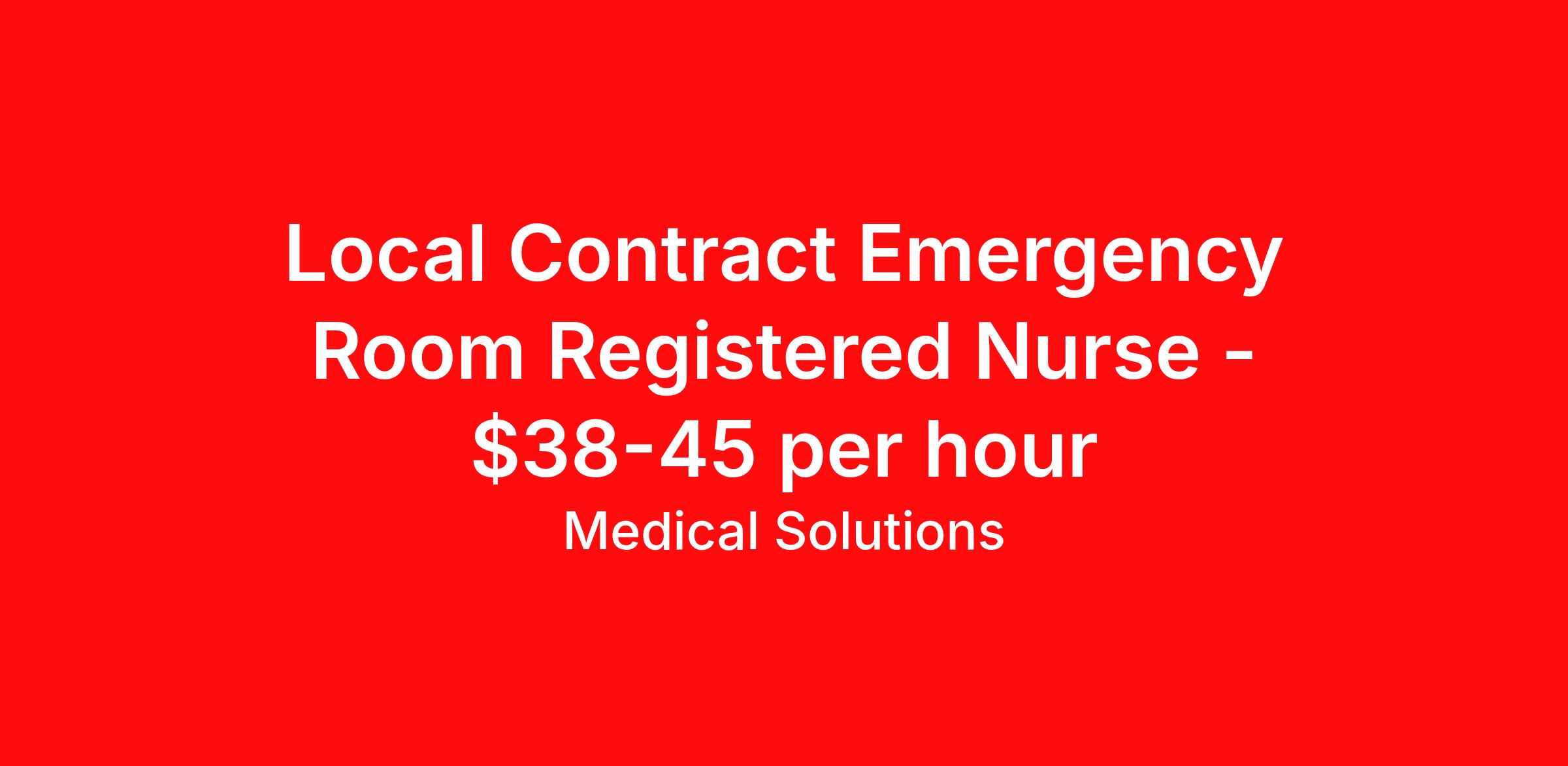 Medical Solutions is seeking a local contract nurse RN ED - Emergency Department for a local contract nursing job in Augusta, Georgia. Job Description & Requirements Specialty: ED - Emergency Department Discipline: RN Duration: 13 weeks 36 hours per week Shift: 12 hours, nights Employment Type: Local Contract We’re seeking talented healthcare professionals whose adventure game is as strong as their clinical game. Those that want flexibility and high pay, we have the positions for you! Some of the industry-leading benefits enjoyed by Medical Solutions travel nurses and travel allied healthcare professionals include: Day One Medical, Dental, and Vision with low premiums Day One 401(k) with Company Contribution Personalized Compensation Packages Paid, Private, Fully Furnished, Pet-Friendly Housing Dedicated Recruiter and 24/7 Customer Care Line Per Diem Allowance and Paid Travel Licensure and Certification Reimbursement Free Liability Coverage Voluntary Benefits: Critical Illness, Hospital Indemnity, Accident, and Pet Insurance Equal Employment Opportunity And More! Estimated pay package based on bill rate at time job was posted. Bill rates can change frequently and without notice. Exact pay package may vary based on guaranteed hours, distance being traveled, and customizations available for travelers. Medical Solutions Job ID 1069156L. Posted job title: ER (Emergency Room) About Medical Solutions At Medical Solutions, we’re people who care, helping people who care. No matter how you look at it, there’s a whole lot of care going on in our world and that’s just the way we like it. What do we do? Medical Solutions is one of the nation’s largest providers of total workforce solutions in the healthcare industry, connecting nurses and allied health clinicians with hospitals and healthcare systems across the country and around the corner. Through our family of brands, we also serve a segment of clients outside of the healthcare space. And we’re the very best at what we do. You’ll love our culture that’s filled with heart and soul. As a company and employer, we’re sincerely and unabashedly us. We lead as humans first and believe the unique qualities of each team member make us better together. We share a purpose for helping others and the drive to make a difference. And we offer endless opportunities for personal and professional growth, throughout your career. At Medical Solutions, you’ll find a great place to work and a career home. We’ve received Best Places to Work awards, landed top industry awards, and received accolades for the impact we’ve made in business and within our community. But the only way to really get to know us, is to join us. We think you’ll fit right in. Benefits Weekly pay Holiday Pay Guaranteed Hours Continuing Education 401k retirement plan Pet insurance Company provided housing options Cancelation protection Wellness and fitness programs Mileage reimbursement Referral bonus Employee assistance programs Medical benefits Dental benefits Vision benefits Benefits start day 1 License and certification reimbursement Life insurance Discount program