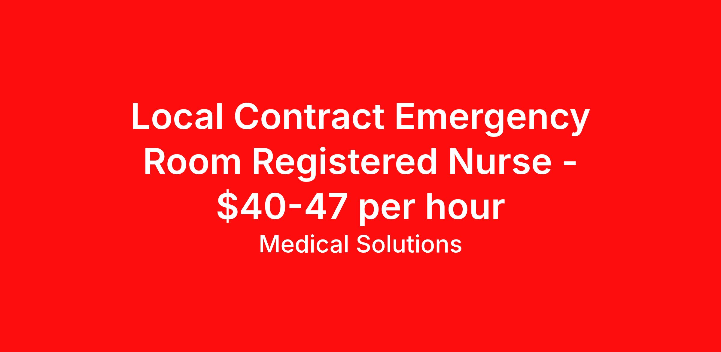 Medical Solutions is seeking a local contract nurse RN ED - Emergency Department for a local contract nursing job in Gainesville, Florida. Job Description & Requirements Specialty: ED - Emergency Department Discipline: RN Duration: 13 weeks 36 hours per week Shift: 12 hours, nights Employment Type: Local Contract We’re seeking talented healthcare professionals whose adventure game is as strong as their clinical game. Those that want flexibility and high pay, we have the positions for you! Some of the industry-leading benefits enjoyed by Medical Solutions travel nurses and travel allied healthcare professionals include: Day One Medical, Dental, and Vision with low premiums Day One 401(k) with Company Contribution Personalized Compensation Packages Paid, Private, Fully Furnished, Pet-Friendly Housing Dedicated Recruiter and 24/7 Customer Care Line Per Diem Allowance and Paid Travel Licensure and Certification Reimbursement Free Liability Coverage Voluntary Benefits: Critical Illness, Hospital Indemnity, Accident, and Pet Insurance Equal Employment Opportunity And More! Estimated pay package based on bill rate at time job was posted. Bill rates can change frequently and without notice. Exact pay package may vary based on guaranteed hours, distance being traveled, and customizations available for travelers. Medical Solutions Job ID 1076544L. Posted job title: ER (Emergency Room) About Medical Solutions At Medical Solutions, we’re people who care, helping people who care. No matter how you look at it, there’s a whole lot of care going on in our world and that’s just the way we like it. What do we do? Medical Solutions is one of the nation’s largest providers of total workforce solutions in the healthcare industry, connecting nurses and allied health clinicians with hospitals and healthcare systems across the country and around the corner. Through our family of brands, we also serve a segment of clients outside of the healthcare space. And we’re the very best at what we do. You’ll love our culture that’s filled with heart and soul. As a company and employer, we’re sincerely and unabashedly us. We lead as humans first and believe the unique qualities of each team member make us better together. We share a purpose for helping others and the drive to make a difference. And we offer endless opportunities for personal and professional growth, throughout your career. At Medical Solutions, you’ll find a great place to work and a career home. We’ve received Best Places to Work awards, landed top industry awards, and received accolades for the impact we’ve made in business and within our community. But the only way to really get to know us, is to join us. We think you’ll fit right in. Benefits Weekly pay Holiday Pay Guaranteed Hours Continuing Education 401k retirement plan Pet insurance Company provided housing options Cancelation protection Wellness and fitness programs Mileage reimbursement Referral bonus Employee assistance programs Medical benefits Dental benefits Vision benefits Benefits start day 1 License and certification reimbursement Life insurance Discount program