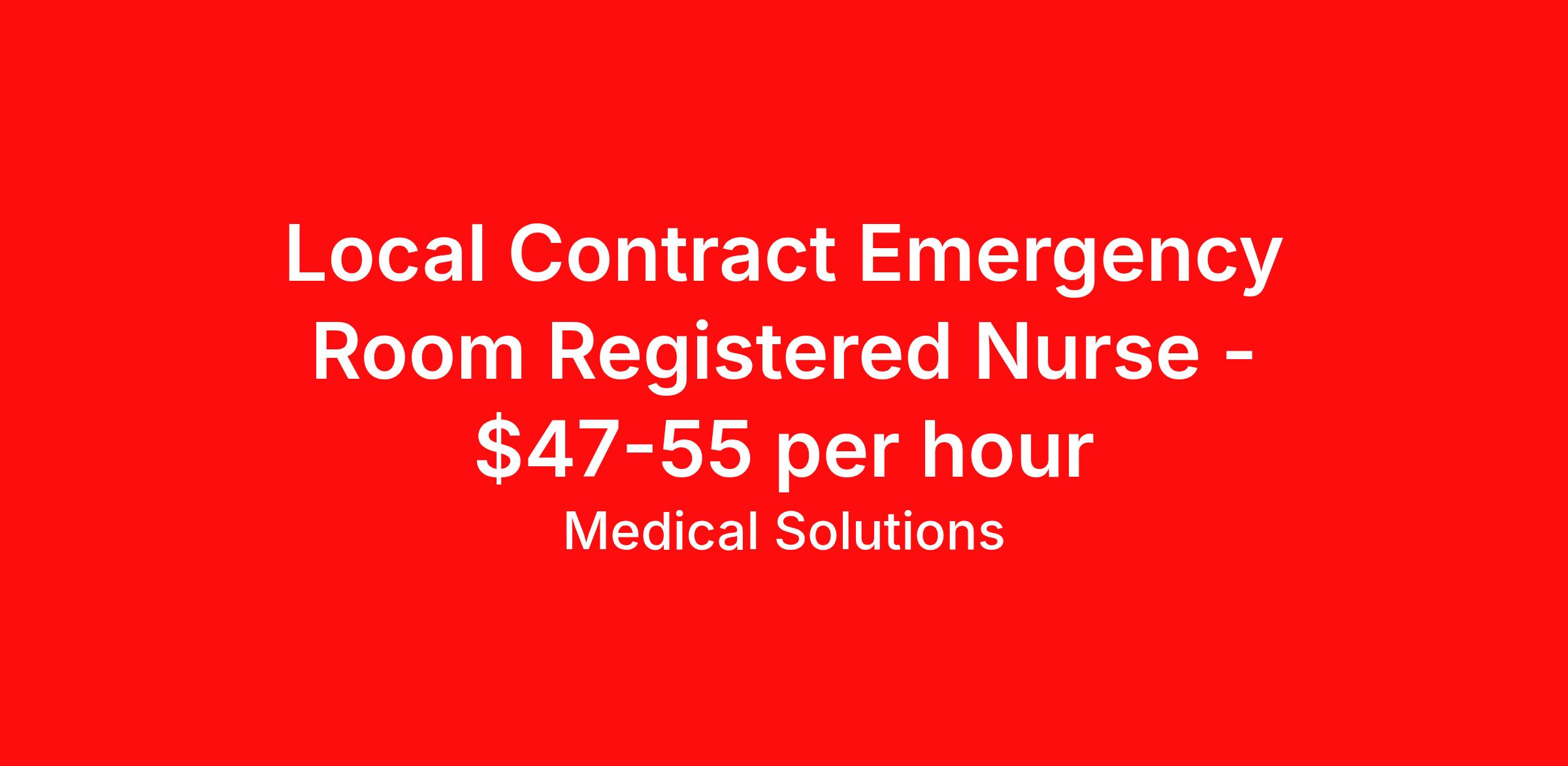 Medical Solutions is seeking a local contract nurse RN ED - Emergency Department for a local contract nursing job in Boston, Massachusetts. Job Description & Requirements Specialty: ED - Emergency Department Discipline: RN Duration: 13 weeks 36 hours per week Shift: 12 hours, days, nights Employment Type: Local Contract We’re seeking talented healthcare professionals whose adventure game is as strong as their clinical game. Those that want flexibility and high pay, we have the positions for you! Some of the industry-leading benefits enjoyed by Medical Solutions travel nurses and travel allied healthcare professionals include: Day One Medical, Dental, and Vision with low premiums Day One 401(k) with Company Contribution Personalized Compensation Packages Paid, Private, Fully Furnished, Pet-Friendly Housing Dedicated Recruiter and 24/7 Customer Care Line Per Diem Allowance and Paid Travel Licensure and Certification Reimbursement Free Liability Coverage Voluntary Benefits: Critical Illness, Hospital Indemnity, Accident, and Pet Insurance Equal Employment Opportunity And More! Estimated pay package based on bill rate at time job was posted. Bill rates can change frequently and without notice. Exact pay package may vary based on guaranteed hours, distance being traveled, and customizations available for travelers. Medical Solutions Job ID 1059860L. Posted job title: ER (Emergency Room) About Medical Solutions At Medical Solutions, we’re people who care, helping people who care. No matter how you look at it, there’s a whole lot of care going on in our world and that’s just the way we like it. What do we do? Medical Solutions is one of the nation’s largest providers of total workforce solutions in the healthcare industry, connecting nurses and allied health clinicians with hospitals and healthcare systems across the country and around the corner. Through our family of brands, we also serve a segment of clients outside of the healthcare space. And we’re the very best at what we do. You’ll love our culture that’s filled with heart and soul. As a company and employer, we’re sincerely and unabashedly us. We lead as humans first and believe the unique qualities of each team member make us better together. We share a purpose for helping others and the drive to make a difference. And we offer endless opportunities for personal and professional growth, throughout your career. At Medical Solutions, you’ll find a great place to work and a career home. We’ve received Best Places to Work awards, landed top industry awards, and received accolades for the impact we’ve made in business and within our community. But the only way to really get to know us, is to join us. We think you’ll fit right in. Benefits Weekly pay Holiday Pay Guaranteed Hours Continuing Education 401k retirement plan Pet insurance Company provided housing options Cancelation protection Wellness and fitness programs Mileage reimbursement Referral bonus Employee assistance programs Medical benefits Dental benefits Vision benefits Benefits start day 1 License and certification reimbursement Life insurance Discount program