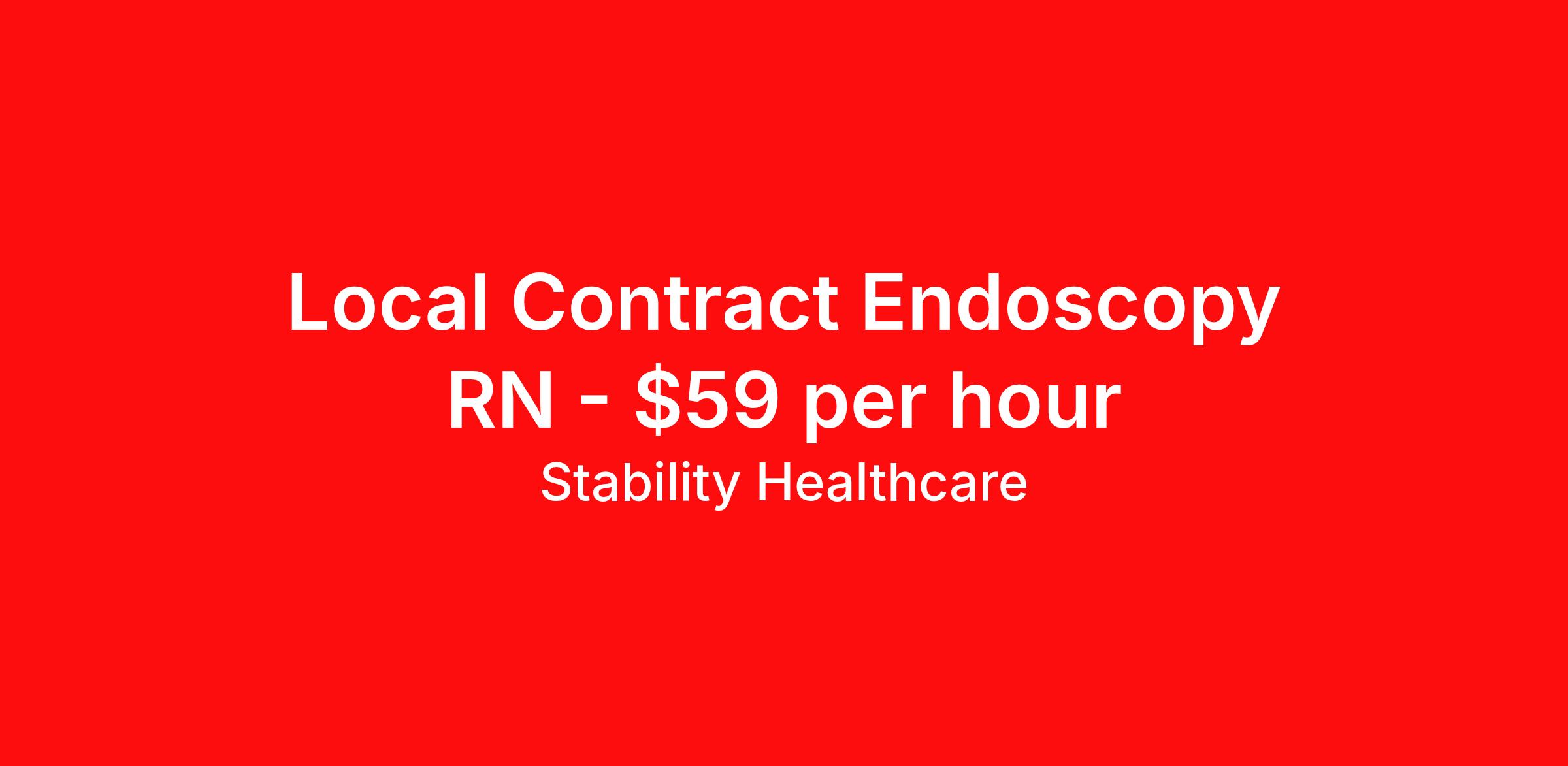 Stability Healthcare is seeking a local contract nurse RN Endoscopy for a local contract nursing job in Salem, Massachusetts. Job Description & Requirements Specialty: Endoscopy Discipline: RN Start Date: 04/19/2026 Duration: 13 weeks 40 hours per week Shift: 8 hours, days Employment Type: Local Contract Stability Healthcare is looking for a Endoscopy/GI RN contract position in Salem, MA. Endoscopy/GI Lab Registered Travel Nurses provide care to patients undergoing procedures in an endoscopy/GI Lab. Endoscopy/GI nurses assess and monitor patients during the procedures and are usually have responsibility associated with sedation and post-procedure care. *$600 travel bonus *Day 1 health insurance with United Healthcare *PTO plan start accruing on day 1, use during contract or cash out at the end! *Guaranteed stipend if facility calls you off *Extra hour bonus earn an additional hourly bonus for working over your weekly contracted hours Stability Job ID L-825828. Pay package is based on 8 hour shifts and 40 hours per week (subject to confirmation) with tax-free stipend amount to be determined. Posted job title: Endoscopy/GI About Stability Healthcare Stability Healthcare was founded in 2009, with the mission of becoming the best Travel Nursing Agency in California. We have been rated one of the top travel nursing agencies and offer our nurses the highest paying travel nursing jobs available. We have access to the best travel assignments from 1000’s of facilities. You can start the year off in sunny California, spend the Spring in the Colorado Rockies, enjoy the Summer in the Mid-West, experience the change of seasons in Boston and New York, and hit the beaches of Florida in the winter. Our Nurses work in the best hospitals and health systems in the country. Benefits Guaranteed Hours Benefits start day 1