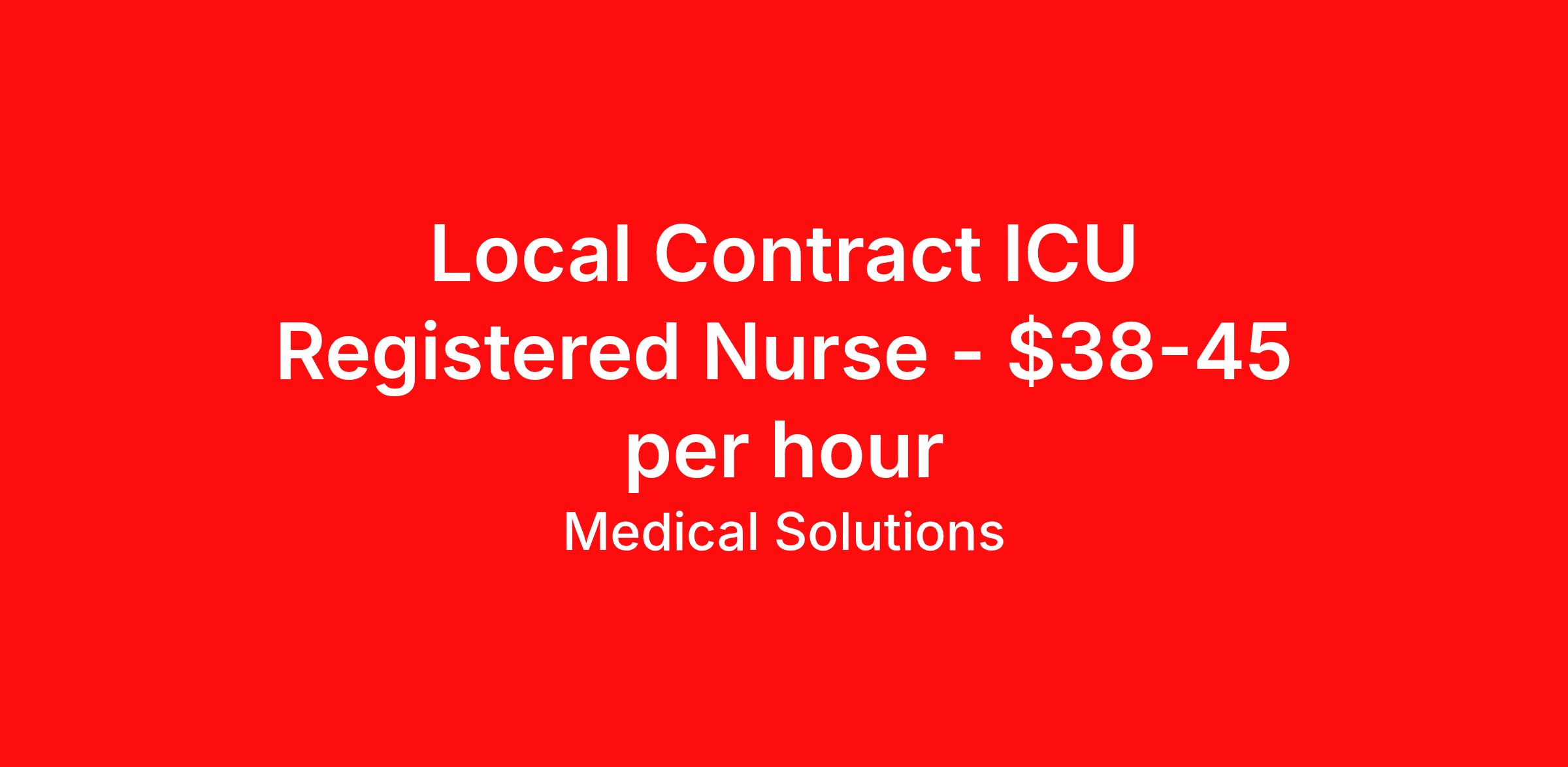 Medical Solutions is seeking a local contract nurse RN ICU - Intensive Care Unit for a local contract nursing job in LaGrange, Georgia. Job Description & Requirements Specialty: ICU - Intensive Care Unit Discipline: RN Duration: 13 weeks 36 hours per week Shift: 12 hours, nights Employment Type: Local Contract We’re seeking talented healthcare professionals whose adventure game is as strong as their clinical game. Those that want flexibility and high pay, we have the positions for you! Some of the industry-leading benefits enjoyed by Medical Solutions travel nurses and travel allied healthcare professionals include: Day One Medical, Dental, and Vision with low premiums Day One 401(k) with Company Contribution Personalized Compensation Packages Paid, Private, Fully Furnished, Pet-Friendly Housing Dedicated Recruiter and 24/7 Customer Care Line Per Diem Allowance and Paid Travel Licensure and Certification Reimbursement Free Liability Coverage Voluntary Benefits: Critical Illness, Hospital Indemnity, Accident, and Pet Insurance Equal Employment Opportunity And More! Estimated pay package based on bill rate at time job was posted. Bill rates can change frequently and without notice. Exact pay package may vary based on guaranteed hours, distance being traveled, and customizations available for travelers. Great hospital about an hour from Atlanta needs a travel nurse right away! ICU/CCU/PCU nurse needed to jump in and help! 12 hour shifts available. Traveler friendly facility! call at Medical Solutions Today! Medical Solutions Job ID 1066876L. Posted job title: ICU (Intensive Care Unit) About Medical Solutions At Medical Solutions, we’re people who care, helping people who care. No matter how you look at it, there’s a whole lot of care going on in our world and that’s just the way we like it. What do we do? Medical Solutions is one of the nation’s largest providers of total workforce solutions in the healthcare industry, connecting nurses and allied health clinicians with hospitals and healthcare systems across the country and around the corner. Through our family of brands, we also serve a segment of clients outside of the healthcare space. And we’re the very best at what we do. You’ll love our culture that’s filled with heart and soul. As a company and employer, we’re sincerely and unabashedly us. We lead as humans first and believe the unique qualities of each team member make us better together. We share a purpose for helping others and the drive to make a difference. And we offer endless opportunities for personal and professional growth, throughout your career. At Medical Solutions, you’ll find a great place to work and a career home. We’ve received Best Places to Work awards, landed top industry awards, and received accolades for the impact we’ve made in business and within our community. But the only way to really get to know us, is to join us. We think you’ll fit right in. Benefits Weekly pay Holiday Pay Guaranteed Hours Continuing Education 401k retirement plan Pet insurance Company provided housing options Cancelation protection Wellness and fitness programs Mileage reimbursement Referral bonus Employee assistance programs Medical benefits Dental benefits Vision benefits Benefits start day 1 License and certification reimbursement Life insurance Discount program