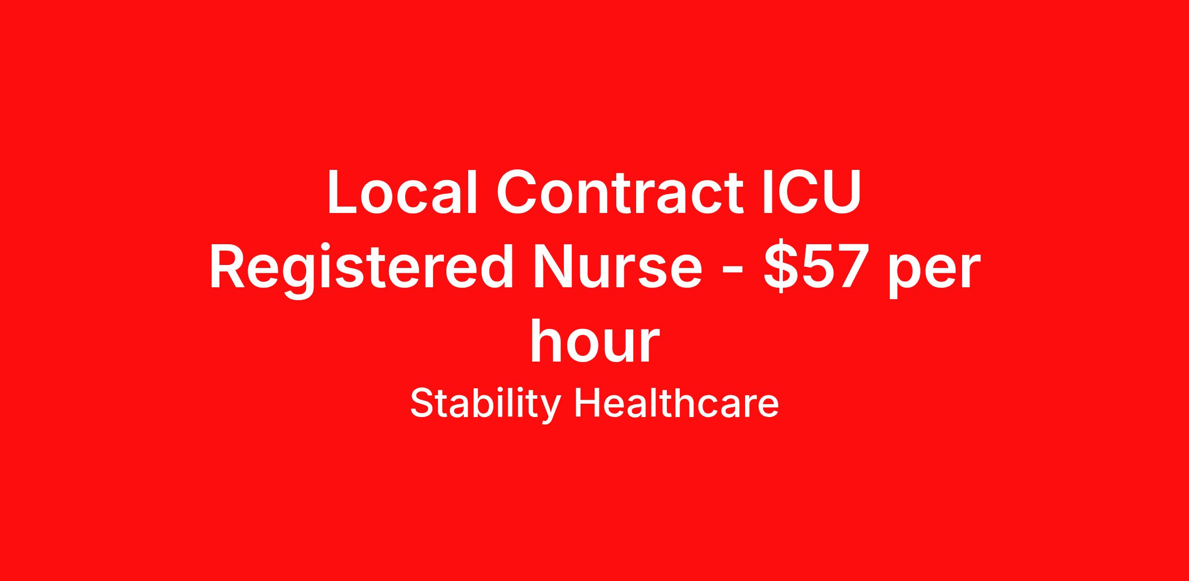 Stability Healthcare is seeking a local contract nurse RN ICU - Intensive Care Unit for a local contract nursing job in Rockport, Maine. Job Description & Requirements Specialty: ICU - Intensive Care Unit Discipline: RN Duration: 13 weeks 36 hours per week Shift: 12 hours, days Employment Type: Local Contract Stability Healthcare is looking for a ICU RN contract position in Rockport, ME. Intensive Care Unit (ICU) Nurses treat acutely ill patients with life-threatening conditions, in settings requiring continuous vigilance and high-intensity therapies. ICU nurses can specialize in a variety of disciplines including medical, surgical, cardiac, burn or Neuro ICU. *$600 travel bonus *Day 1 health insurance with United Healthcare *PTO plan start accruing on day 1, use during contract or cash out at the end! *Guaranteed stipend if facility calls you off *Extra hour bonus earn an additional hourly bonus for working over your weekly contracted hours Stability Job ID L-828530. Pay package is based on 12 hour shifts and 36 hours per week (subject to confirmation) with tax-free stipend amount to be determined. Posted job title: ICU About Stability Healthcare Stability Healthcare was founded in 2009, with the mission of becoming the best Travel Nursing Agency in California. We have been rated one of the top travel nursing agencies and offer our nurses the highest paying travel nursing jobs available. We have access to the best travel assignments from 1000’s of facilities. You can start the year off in sunny California, spend the Spring in the Colorado Rockies, enjoy the Summer in the Mid-West, experience the change of seasons in Boston and New York, and hit the beaches of Florida in the winter. Our Nurses work in the best hospitals and health systems in the country. Benefits Guaranteed Hours Benefits start day 1