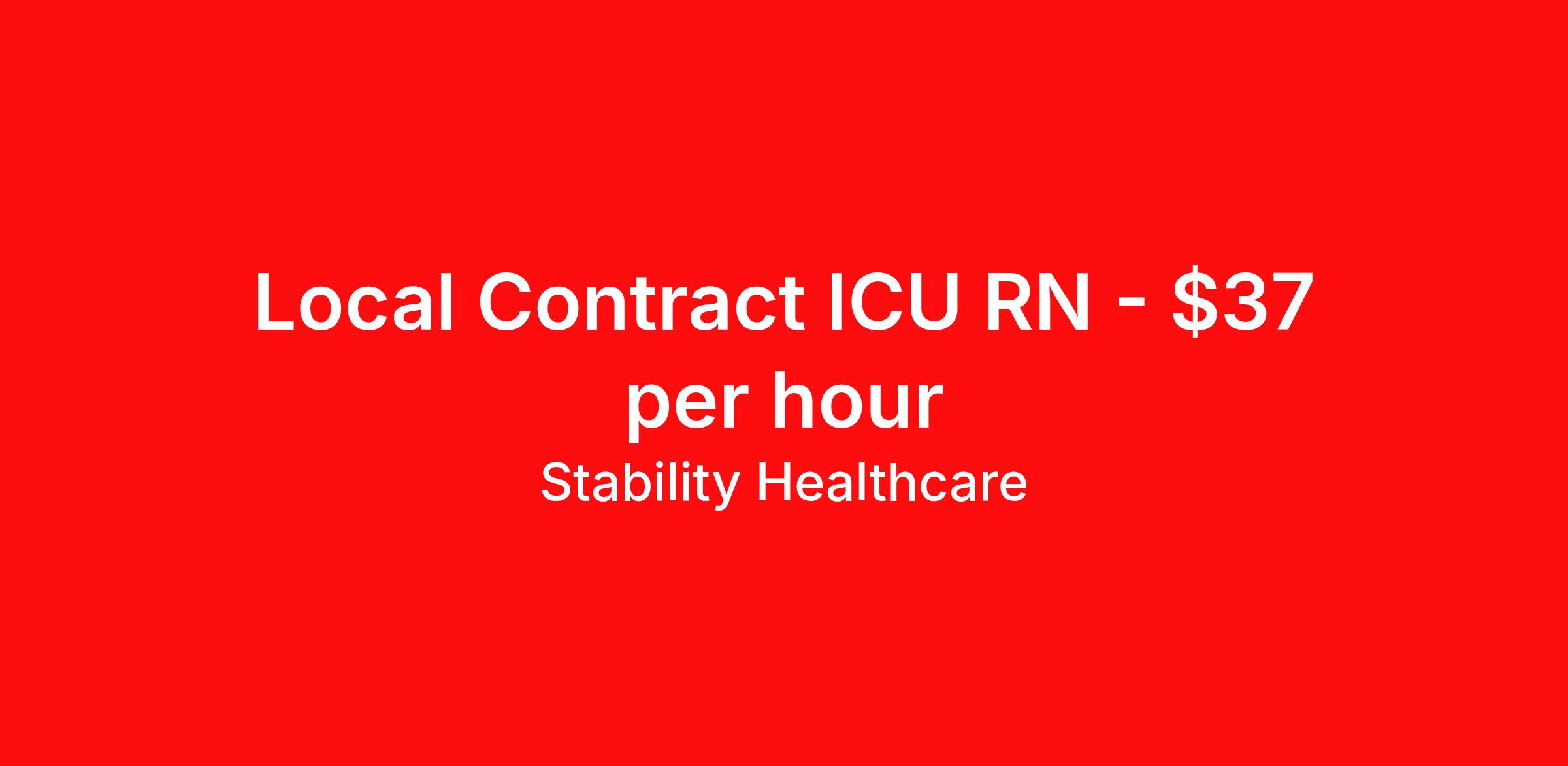 Stability Healthcare is seeking a local contract nurse RN ICU - Intensive Care Unit for a local contract nursing job in Plano, Texas. Job Description & Requirements Specialty: ICU - Intensive Care Unit Discipline: RN Duration: 13 weeks 36 hours per week Shift: 12 hours, nights Employment Type: Local Contract Stability Healthcare is looking for a CVICU RN contract position in Plano, TX. Nurses working in the cardiovascular intensive care unit provide care for patients recovering from open-heart surgery and heart transplants. CVICU Nurses observe changes, perform diagnostics tests, analyze charts, and record medical histories of patients. *$600 travel bonus *Day 1 health insurance with United Healthcare *PTO plan start accruing on day 1, use during contract or cash out at the end! *Guaranteed stipend if facility calls you off *Extra hour bonus earn an additional hourly bonus for working over your weekly contracted hours Stability Job ID L-818142. Pay package is based on 12 hour shifts and 36 hours per week (subject to confirmation) with tax-free stipend amount to be determined. Posted job title: CVICU About Stability Healthcare Stability Healthcare was founded in 2009, with the mission of becoming the best Travel Nursing Agency in California. We have been rated one of the top travel nursing agencies and offer our nurses the highest paying travel nursing jobs available. We have access to the best travel assignments from 1000’s of facilities. You can start the year off in sunny California, spend the Spring in the Colorado Rockies, enjoy the Summer in the Mid-West, experience the change of seasons in Boston and New York, and hit the beaches of Florida in the winter. Our Nurses work in the best hospitals and health systems in the country. Benefits Guaranteed Hours Benefits start day 1