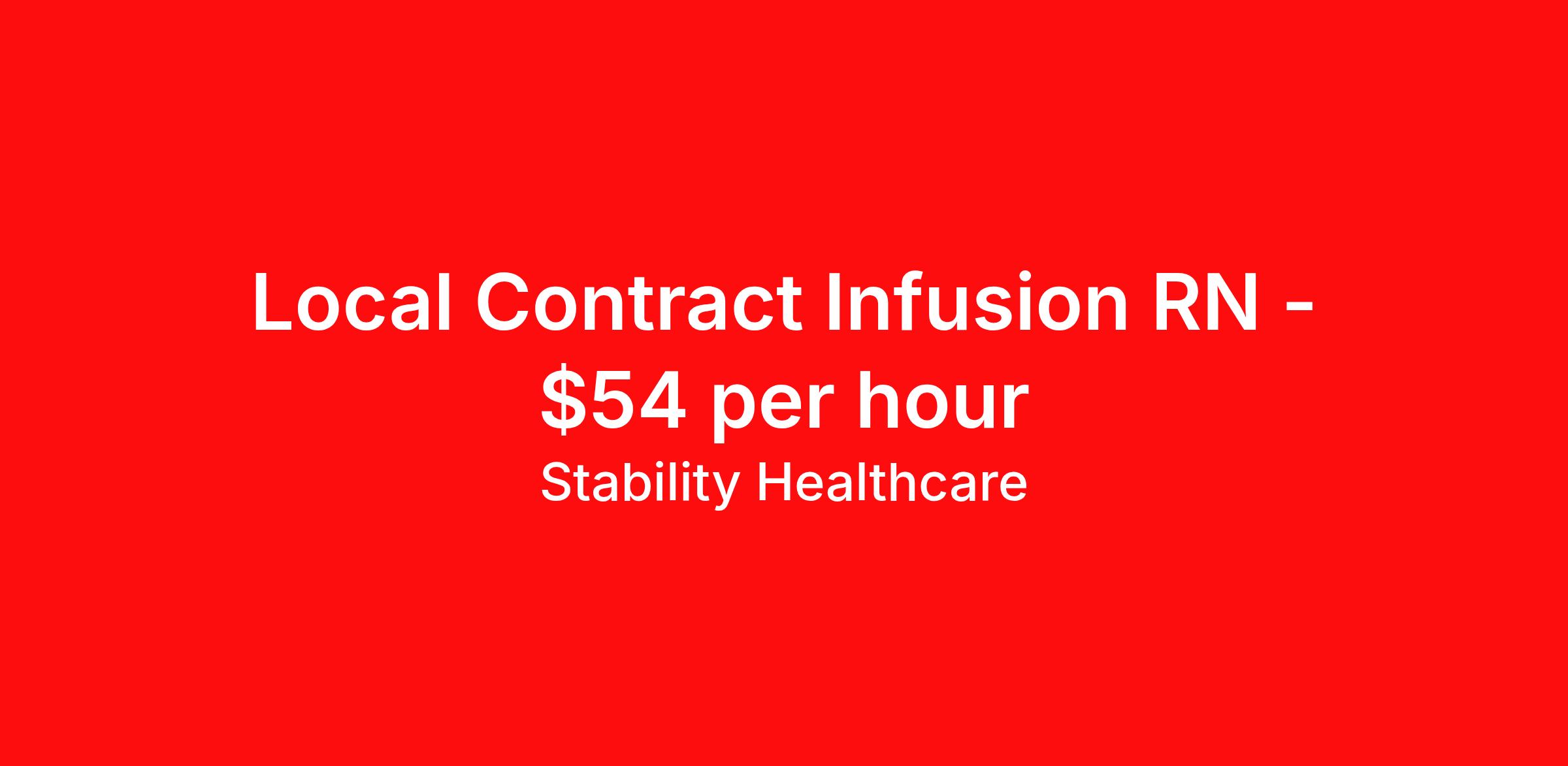 Stability Healthcare is seeking a local contract nurse RN Infusion for a local contract nursing job in Beverly, Massachusetts. Job Description & Requirements Specialty: Infusion Discipline: RN Duration: 13 weeks 40 hours per week Shift: 8 hours, days Employment Type: Local Contract Stability Healthcare is looking for a Infusion RN contract position in Beverly, MA. This includes administering chemotherapy, blood products, antibiotics, and other specialized medications that cannot be taken orally. Infusion RNs are responsible for monitoring patients during the infusion process to ensure that they are receiving the correct dose of medication and that there are no adverse reactions. They also play an important role in patient education, teaching patients and their families how to care for their IV lines at home and what to do in case of complications. *$600 travel bonus *Day 1 health insurance with United Healthcare *PTO plan start accruing on day 1, use during contract or cash out at the end! *Guaranteed stipend if facility calls you off *Extra hour bonus earn an additional hourly bonus for working over your weekly contracted hours Stability Job ID L-827607. Pay package is based on 8 hour shifts and 40 hours per week (subject to confirmation) with tax-free stipend amount to be determined. Posted job title: Infusion About Stability Healthcare Stability Healthcare was founded in 2009, with the mission of becoming the best Travel Nursing Agency in California. We have been rated one of the top travel nursing agencies and offer our nurses the highest paying travel nursing jobs available. We have access to the best travel assignments from 1000’s of facilities. You can start the year off in sunny California, spend the Spring in the Colorado Rockies, enjoy the Summer in the Mid-West, experience the change of seasons in Boston and New York, and hit the beaches of Florida in the winter. Our Nurses work in the best hospitals and health systems in the country. Benefits Guaranteed Hours Benefits start day 1