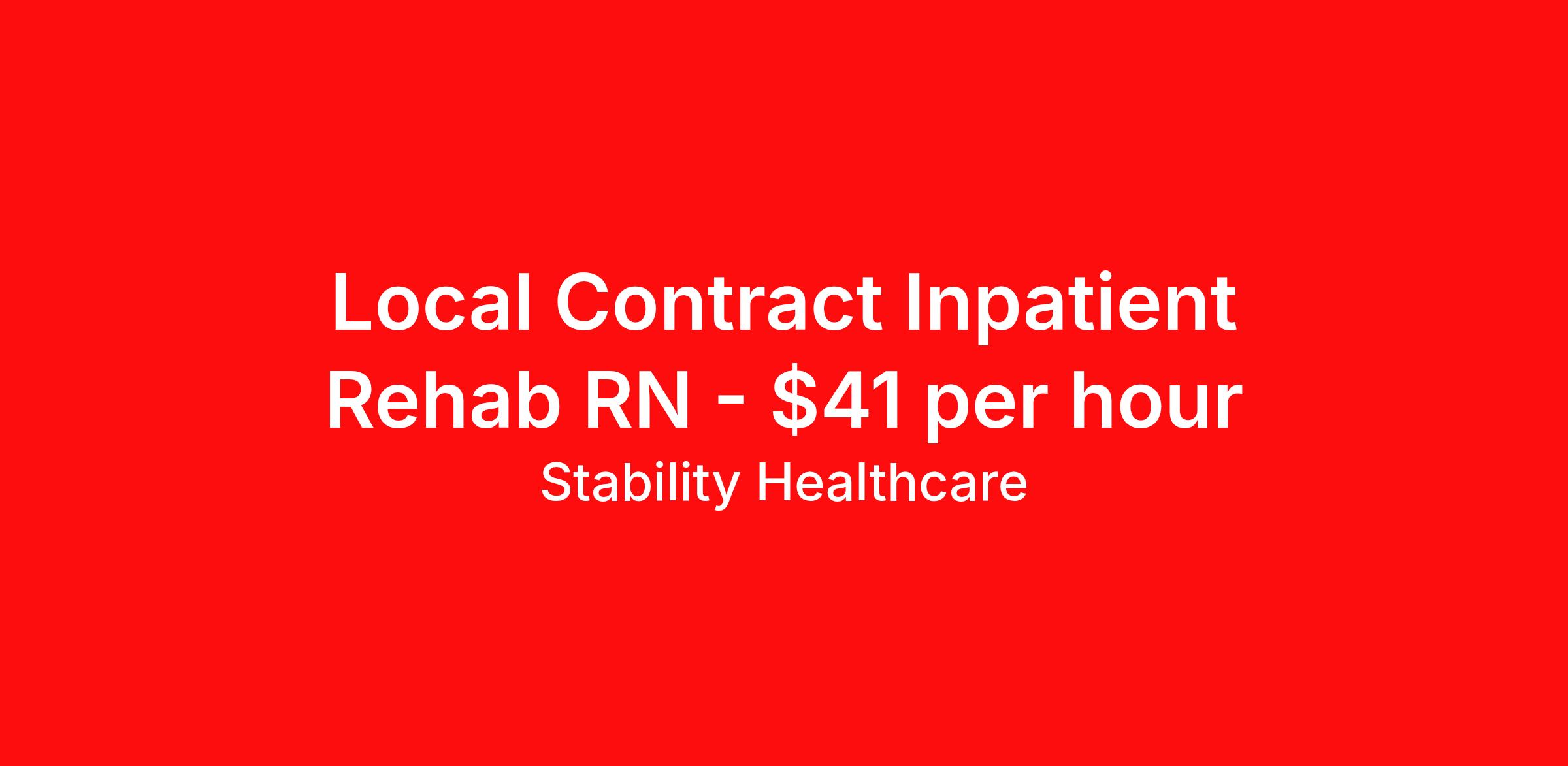 Stability Healthcare is seeking a local contract nurse RN Rehabilitation for a local contract nursing job in Springdale, Arkansas. Job Description & Requirements Specialty: Rehabilitation Discipline: RN Start Date: 04/13/2026 Duration: 13 weeks 36 hours per week Shift: 12 hours, nights Employment Type: Local Contract Stability Healthcare is looking for a Rehab RN contract position in Springdale, AR. Rehabilitation Nurses help patients, who still require some nursing care, adapt physically and emotionally to lifestyle changes and teaches them new skills as well as providing other nursing care. The primary goals of a Rehab Nurse is to help patients attain or maintain maximum function. *$600 travel bonus *Day 1 health insurance with United Healthcare *PTO plan start accruing on day 1, use during contract or cash out at the end! *Guaranteed stipend if facility calls you off *Extra hour bonus earn an additional hourly bonus for working over your weekly contracted hours Stability Job ID L-827734. Pay package is based on 12 hour shifts and 36 hours per week (subject to confirmation) with tax-free stipend amount to be determined. Posted job title: Rehab About Stability Healthcare Stability Healthcare was founded in 2009, with the mission of becoming the best Travel Nursing Agency in California. We have been rated one of the top travel nursing agencies and offer our nurses the highest paying travel nursing jobs available. We have access to the best travel assignments from 1000’s of facilities. You can start the year off in sunny California, spend the Spring in the Colorado Rockies, enjoy the Summer in the Mid-West, experience the change of seasons in Boston and New York, and hit the beaches of Florida in the winter. Our Nurses work in the best hospitals and health systems in the country. Benefits Guaranteed Hours Benefits start day 1