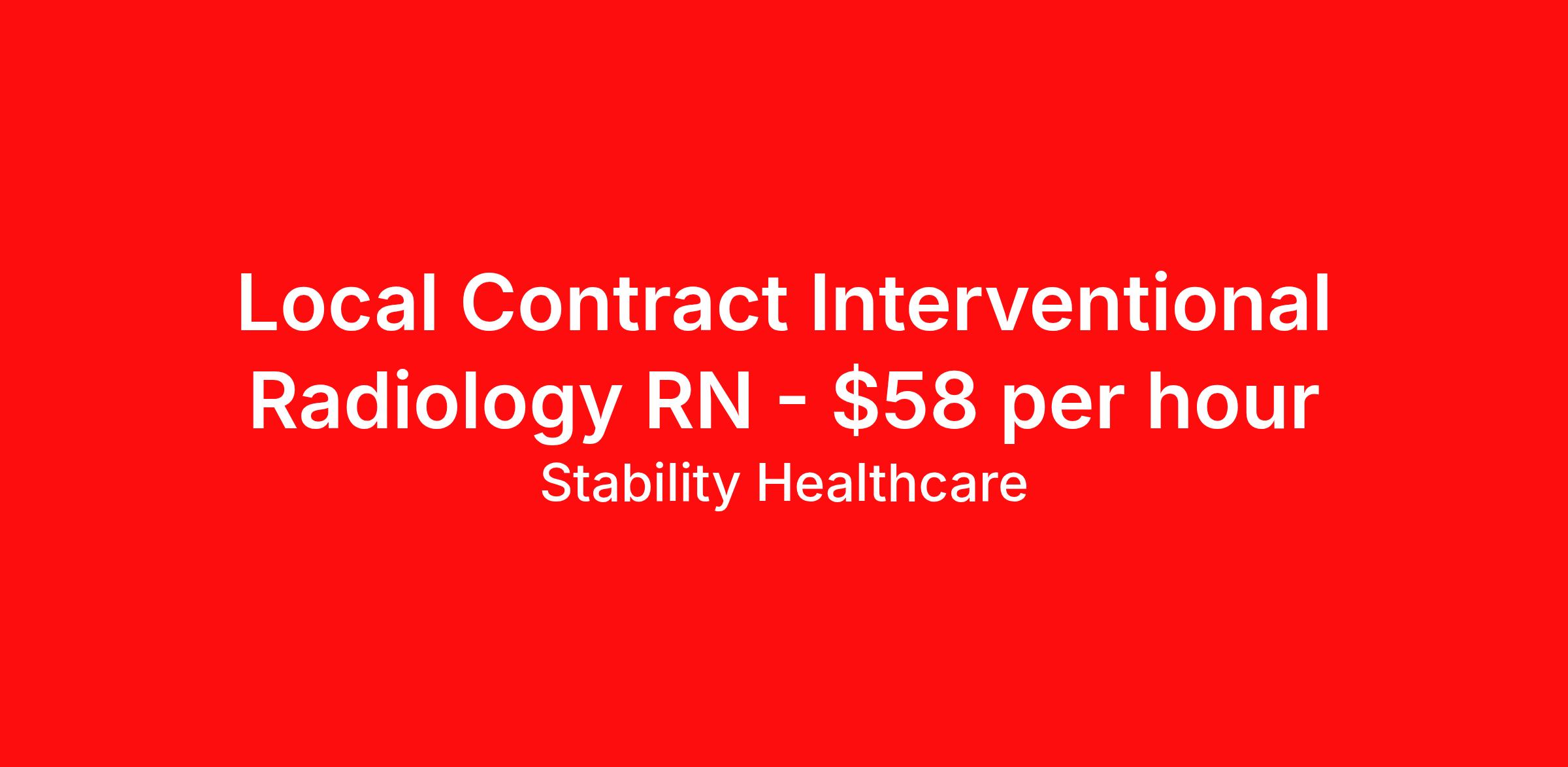 Stability Healthcare is seeking a local contract nurse RN Interventional Radiology for a local contract nursing job in Detroit, Michigan. Job Description & Requirements Specialty: Interventional Radiology Discipline: RN Duration: 13 weeks 40 hours per week Shift: 8 hours, days Employment Type: Local Contract Stability Healthcare is looking for a Interventional Radiology RN contract position in Detroit, MI. The main goal of radiology nurses is patient safety. They monitor and assess patients, provide education to the patient and family members, ensure the patient and family members understand the procedure and plan of care, Insert and remove intravenous lines, administer conscious sedation drugs and other drugs, monitor patient patterns and vital signs during the procedure, and oversee the safety and comfort of patients before, during, and after procedures. *$600 travel bonus *Day 1 health insurance with United Healthcare *PTO plan start accruing on day 1, use during contract or cash out at the end! *Guaranteed stipend if facility calls you off *Extra hour bonus earn an additional hourly bonus for working over your weekly contracted hours Stability Job ID L-826252. Pay package is based on 8 hour shifts and 40 hours per week (subject to confirmation) with tax-free stipend amount to be determined. Posted job title: Interventional Radiology About Stability Healthcare Stability Healthcare was founded in 2009, with the mission of becoming the best Travel Nursing Agency in California. We have been rated one of the top travel nursing agencies and offer our nurses the highest paying travel nursing jobs available. We have access to the best travel assignments from 1000’s of facilities. You can start the year off in sunny California, spend the Spring in the Colorado Rockies, enjoy the Summer in the Mid-West, experience the change of seasons in Boston and New York, and hit the beaches of Florida in the winter. Our Nurses work in the best hospitals and health systems in the country. Benefits Guaranteed Hours Benefits start day 1