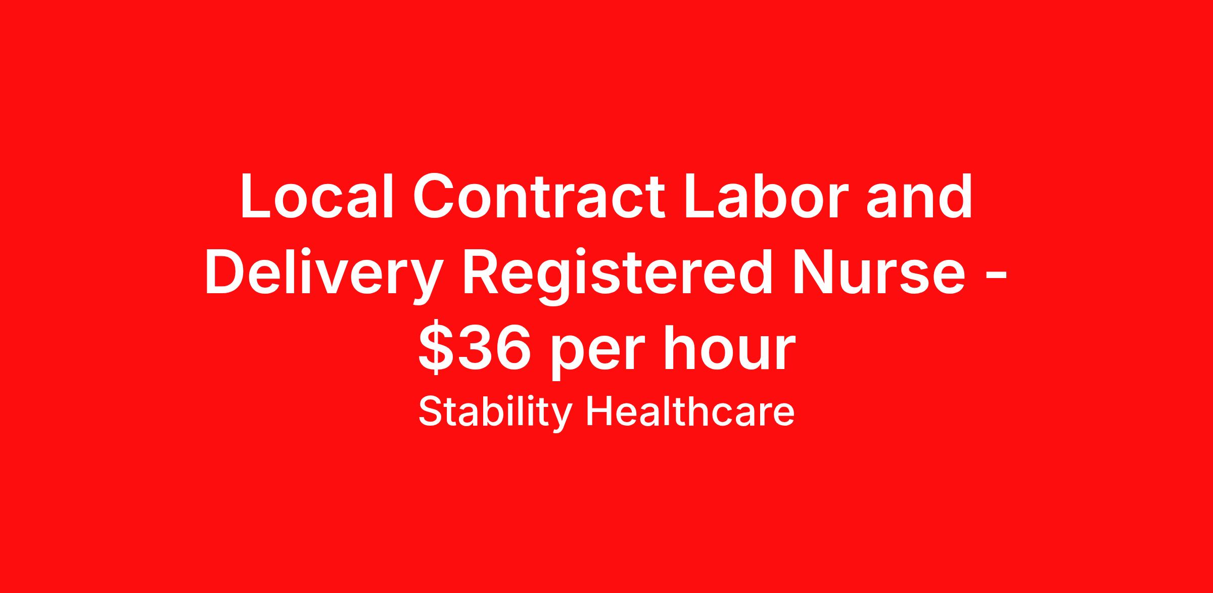 Stability Healthcare is seeking a local contract nurse RN Labor and Delivery for a local contract nursing job in Titusville, Florida. Job Description & Requirements Specialty: Labor and Delivery Discipline: RN Start Date: 04/21/2026 Duration: 13 weeks 36 hours per week Shift: 12 hours, nights Employment Type: Local Contract Stability Healthcare is looking for a L&D RN contract position in Titusville, FL. Labor and Delivery (L&D) Nurses care for women during labor and childbirth, monitoring the baby and the mother, coaching mothers and assisting doctors. As a L&D Nurse, you'll prepare women, and their families, for the stages of giving birth and help patients with breastfeeding after the baby is born. *$600 travel bonus *Day 1 health insurance with United Healthcare *PTO plan start accruing on day 1, use during contract or cash out at the end! *Guaranteed stipend if facility calls you off *Extra hour bonus earn an additional hourly bonus for working over your weekly contracted hours Stability Job ID L-827270. Pay package is based on 12 hour shifts and 36 hours per week (subject to confirmation) with tax-free stipend amount to be determined. Posted job title: L&D About Stability Healthcare Stability Healthcare was founded in 2009, with the mission of becoming the best Travel Nursing Agency in California. We have been rated one of the top travel nursing agencies and offer our nurses the highest paying travel nursing jobs available. We have access to the best travel assignments from 1000’s of facilities. You can start the year off in sunny California, spend the Spring in the Colorado Rockies, enjoy the Summer in the Mid-West, experience the change of seasons in Boston and New York, and hit the beaches of Florida in the winter. Our Nurses work in the best hospitals and health systems in the country. Benefits Guaranteed Hours Benefits start day 1
