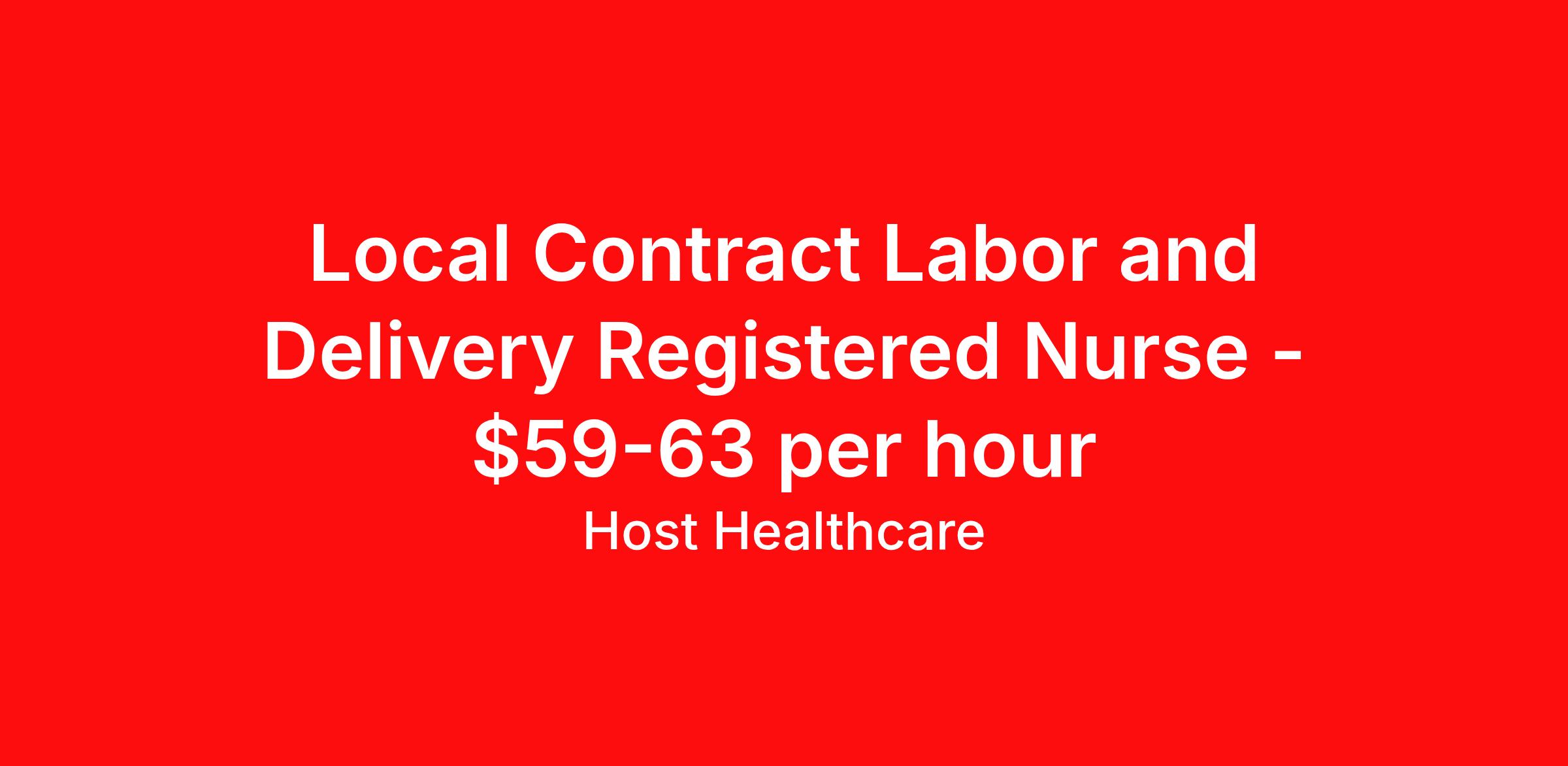 Local Contract Labor and Delivery Registered Nurse - $59-63 per hour