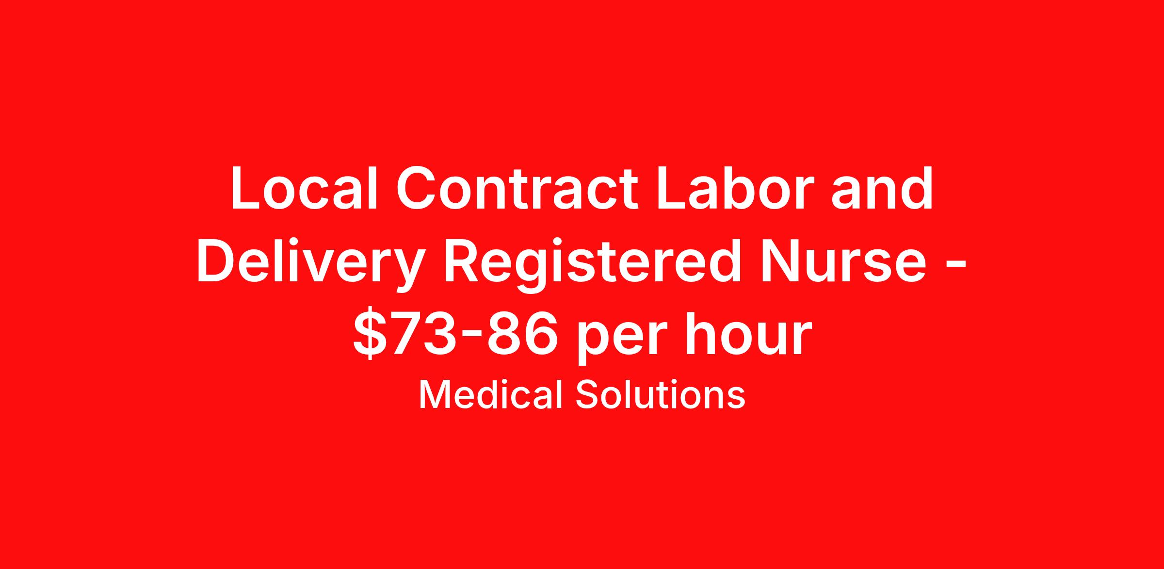 Local Contract Labor and Delivery Registered Nurse - $73-86 per hour