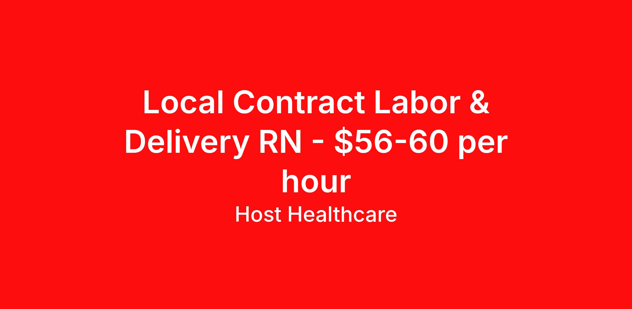 Host Healthcare is seeking a local contract nurse RN Labor and Delivery for a local contract nursing job in Ottumwa, Iowa. Job Description & Requirements Specialty: Labor and Delivery Discipline: RN Start Date: 04/13/2026 Duration: 13 weeks 36 hours per week Shift: 12 hours, nights Employment Type: Local Contract Host Healthcare Job ID La1fVX000002y8UbYAI. Pay package is based on 12 hour shifts and 36 hours per week (subject to confirmation) with tax-free stipend amount to be determined. Posted job title: RN - Labor and Delivery About Host Healthcare At Host Healthcare, we provide a truly comfortable experience as you explore your travel nursing, therapy, or allied career. We make your travel healthcare journey easy by taking care of all the details, so you don’t have to. We are on a mission to help others live better and we do this by helping the healers of the world be as comfortable as possible. With access to tens of thousands of travel nursing, therapy, and allied jobs in all 50 states, our responsive and friendly recruiters find your dream position based on what’s important to you. During your assignment, get access to premium benefits, including Day 1 medical that continues up to 30 days between assignments, 401K matching, travel reimbursements, dedicated housing support, and more. We also offer 24/7 support from our team and access to our on-staff clinicians so you can feel comfortable and confident throughout your entire assignment. Travel comfortably with Host Healthcare. Benefits Referral bonus School loan reimbursement Vision benefits Wellness and fitness programs Company provided housing options License and certification reimbursement Life insurance Medical benefits Mileage reimbursement Pet insurance Discount program Employee assistance programs Guaranteed Hours Health savings account Holiday Pay 401k retirement plan Continuing Education Dental benefits