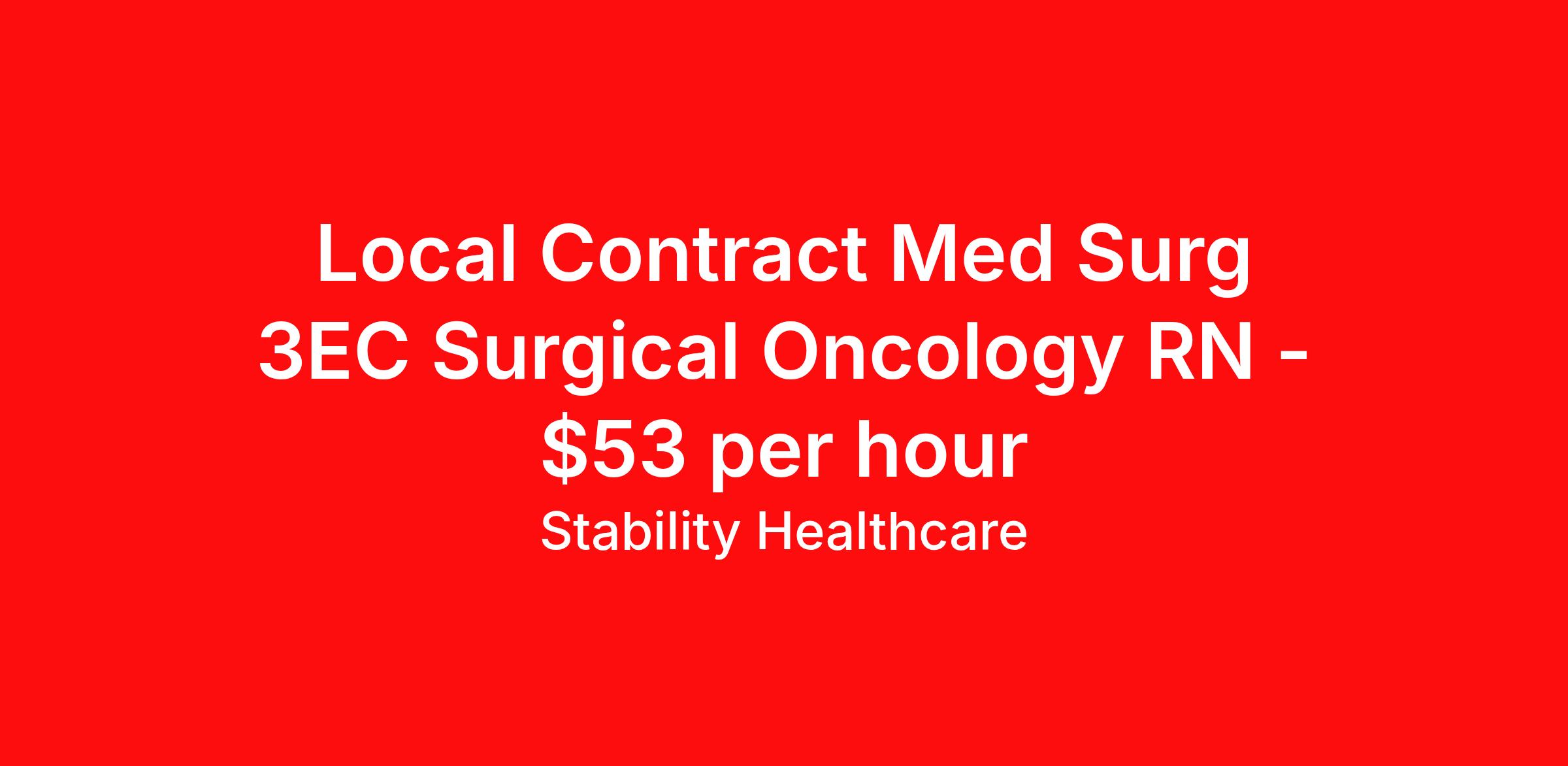 Stability Healthcare is seeking a local contract nurse RN Oncology Med Surg for a local contract nursing job in Terre Haute, Indiana. Job Description & Requirements Specialty: Oncology Discipline: RN Duration: 13 weeks 36 hours per week Shift: 12 hours, nights Employment Type: Local Contract Stability Healthcare is looking for a Oncology RN contract position in Terre Haute, IN. Oncology Nurses care for cancer patients of all ages. Oncology is one of the most challenging fields in nursing requiring high level of compassion to support and care for patients and their loved ones. Helping individuals through challenges on their cancer journey also makes Oncology one of the most rewarding professions. *$600 travel bonus *Day 1 health insurance with United Healthcare *PTO plan start accruing on day 1, use during contract or cash out at the end! *Guaranteed stipend if facility calls you off *Extra hour bonus earn an additional hourly bonus for working over your weekly contracted hours Stability Job ID L-827383. Pay package is based on 12 hour shifts and 36 hours per week (subject to confirmation) with tax-free stipend amount to be determined. Posted job title: Oncology About Stability Healthcare Stability Healthcare was founded in 2009, with the mission of becoming the best Travel Nursing Agency in California. We have been rated one of the top travel nursing agencies and offer our nurses the highest paying travel nursing jobs available. We have access to the best travel assignments from 1000’s of facilities. You can start the year off in sunny California, spend the Spring in the Colorado Rockies, enjoy the Summer in the Mid-West, experience the change of seasons in Boston and New York, and hit the beaches of Florida in the winter. Our Nurses work in the best hospitals and health systems in the country. Benefits Guaranteed Hours Benefits start day 1