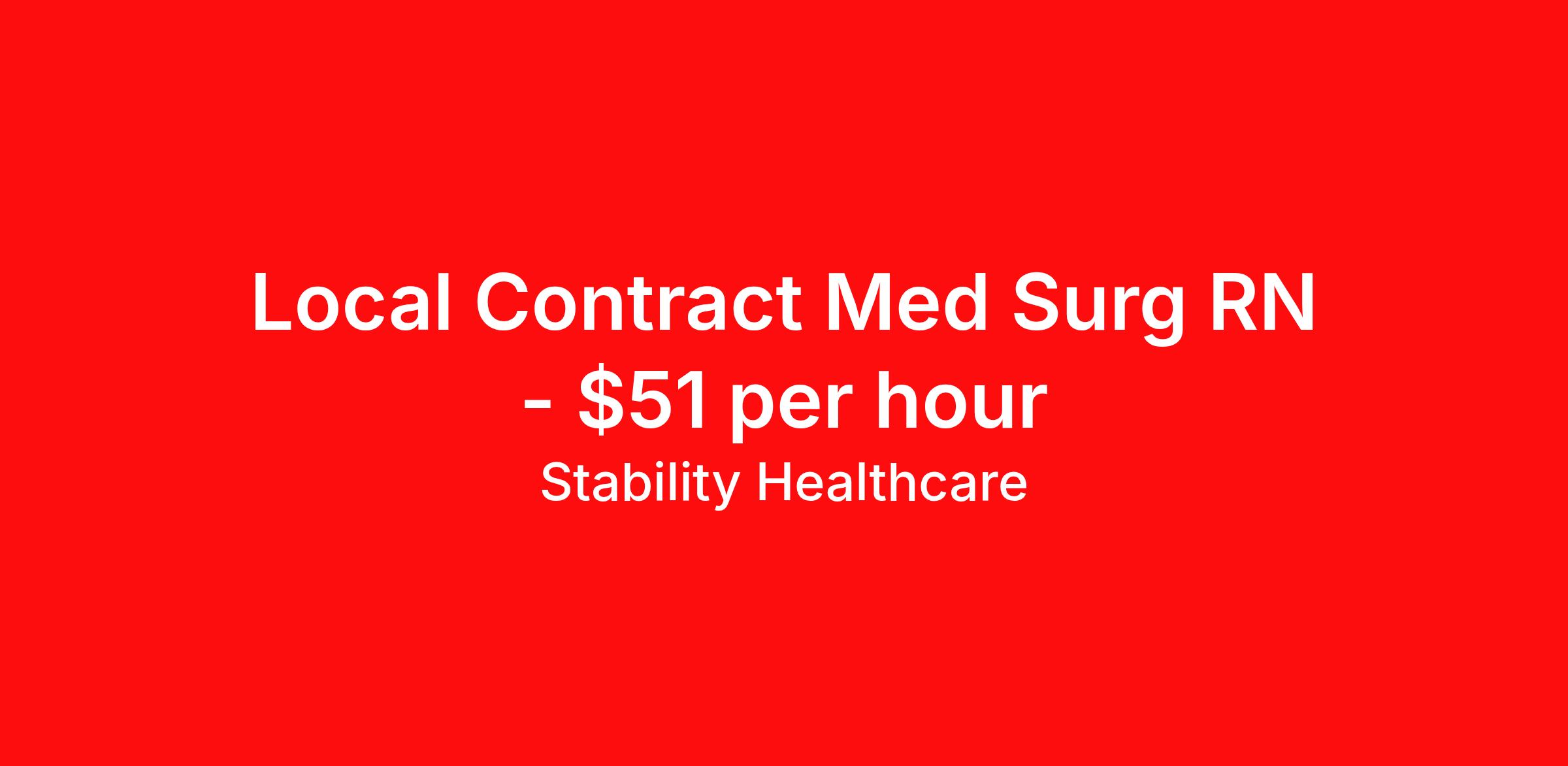 Stability Healthcare is seeking a local contract nurse RN Med Surg for a local contract nursing job in Poplar Bluff, Missouri. Job Description & Requirements Specialty: Med Surg Discipline: RN Duration: 13 weeks 36 hours per week Shift: 12 hours, nights Employment Type: Local Contract Stability Healthcare is looking for a Med-Surg RN contract position in Poplar Bluff, MO. The majority of hospitalized patients are admitted to M/S either directly or after surgery. M/S is also where patients who have been in critical care (ICU) are transferred when they no longer need critical care but still require nursing care. *$600 travel bonus *Day 1 health insurance with United Healthcare *PTO plan start accruing on day 1, use during contract or cash out at the end! *Guaranteed stipend if facility calls you off *Extra hour bonus earn an additional hourly bonus for working over your weekly contracted hours Stability Job ID L-823354. Pay package is based on 12 hour shifts and 36 hours per week (subject to confirmation) with tax-free stipend amount to be determined. Posted job title: Med-Surg About Stability Healthcare Stability Healthcare was founded in 2009, with the mission of becoming the best Travel Nursing Agency in California. We have been rated one of the top travel nursing agencies and offer our nurses the highest paying travel nursing jobs available. We have access to the best travel assignments from 1000’s of facilities. You can start the year off in sunny California, spend the Spring in the Colorado Rockies, enjoy the Summer in the Mid-West, experience the change of seasons in Boston and New York, and hit the beaches of Florida in the winter. Our Nurses work in the best hospitals and health systems in the country. Benefits Guaranteed Hours Benefits start day 1