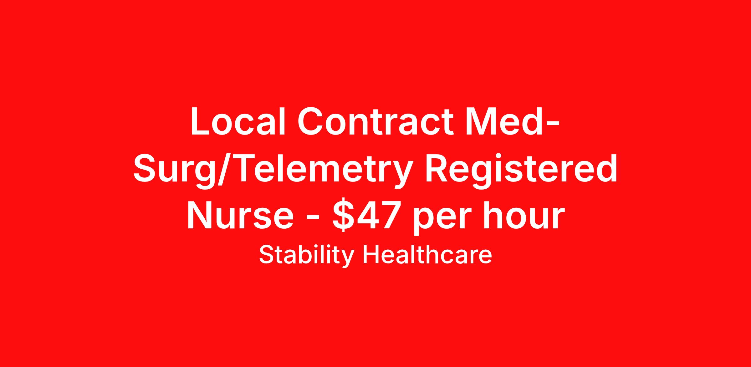 Stability Healthcare is seeking a local contract nurse RN Med Surg / Telemetry for a local contract nursing job in Fort Smith, Arkansas. Job Description & Requirements Specialty: Med Surg / Telemetry Discipline: RN Duration: 13 weeks 36 hours per week Shift: 12 hours, nights Employment Type: Local Contract Stability Healthcare is looking for a Tele Med-Surg RN contract position in Fort Smith, AR. The Medical Surgical Telemetry Registered Nurse (RN) provides direct nursing care in accordance with established policies, procedures and protocols of the healthcare organization often specializing in Neuro, Ortho or Cardiac patients. *$600 travel bonus *Day 1 health insurance with United Healthcare *PTO plan start accruing on day 1, use during contract or cash out at the end! *Guaranteed stipend if facility calls you off *Extra hour bonus earn an additional hourly bonus for working over your weekly contracted hours Stability Job ID L-824406. Pay package is based on 12 hour shifts and 36 hours per week (subject to confirmation) with tax-free stipend amount to be determined. Posted job title: Tele Med-Surg About Stability Healthcare Stability Healthcare was founded in 2009, with the mission of becoming the best Travel Nursing Agency in California. We have been rated one of the top travel nursing agencies and offer our nurses the highest paying travel nursing jobs available. We have access to the best travel assignments from 1000’s of facilities. You can start the year off in sunny California, spend the Spring in the Colorado Rockies, enjoy the Summer in the Mid-West, experience the change of seasons in Boston and New York, and hit the beaches of Florida in the winter. Our Nurses work in the best hospitals and health systems in the country. Benefits Guaranteed Hours Benefits start day 1