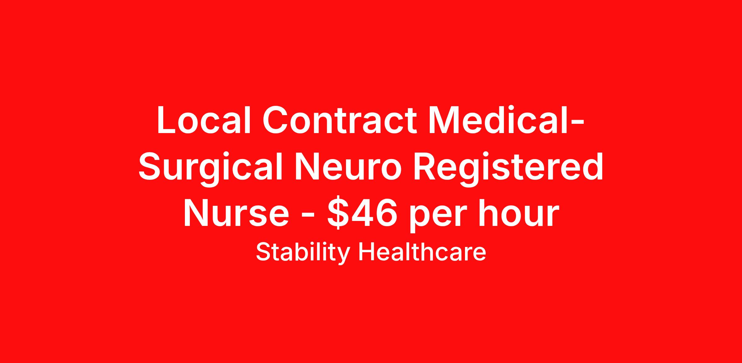 Stability Healthcare is seeking a local contract nurse RN Med Surg for a local contract nursing job in Charleston, West Virginia. Job Description & Requirements Specialty: Med Surg Discipline: RN Start Date: 05/28/2026 Duration: 13 weeks 36 hours per week Shift: 12 hours, nights Employment Type: Local Contract Stability Healthcare is looking for a Med-Surg RN contract position in Charleston, WV. The majority of hospitalized patients are admitted to M/S either directly or after surgery. M/S is also where patients who have been in critical care (ICU) are transferred when they no longer need critical care but still require nursing care. *$600 travel bonus *Day 1 health insurance with United Healthcare *PTO plan start accruing on day 1, use during contract or cash out at the end! *Guaranteed stipend if facility calls you off *Extra hour bonus earn an additional hourly bonus for working over your weekly contracted hours Stability Job ID L-837974. Pay package is based on 12 hour shifts and 36 hours per week (subject to confirmation) with tax-free stipend amount to be determined. Posted job title: Med-Surg About Stability Healthcare Stability Healthcare was founded in 2009, with the mission of becoming the best Travel Nursing Agency in California. We have been rated one of the top travel nursing agencies and offer our nurses the highest paying travel nursing jobs available. We have access to the best travel assignments from 1000’s of facilities. You can start the year off in sunny California, spend the Spring in the Colorado Rockies, enjoy the Summer in the Mid-West, experience the change of seasons in Boston and New York, and hit the beaches of Florida in the winter. Our Nurses work in the best hospitals and health systems in the country. Benefits Guaranteed Hours Benefits start day 1