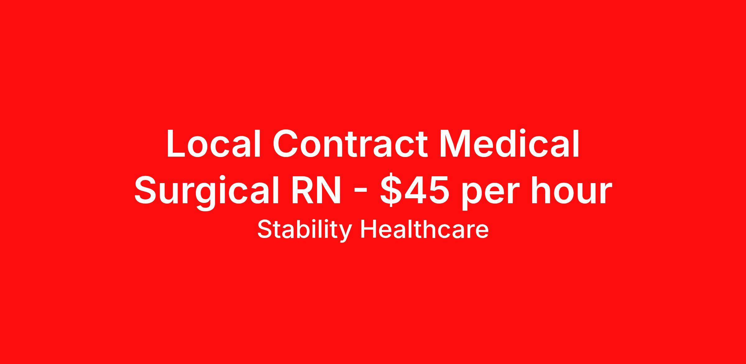 Stability Healthcare is seeking a local contract nurse RN Med Surg for a local contract nursing job in Sylva, North Carolina. Job Description & Requirements Specialty: Med Surg Discipline: RN Duration: 13 weeks 36 hours per week Shift: 12 hours, nights Employment Type: Local Contract Stability Healthcare is looking for a Med-Surg RN contract position in Sylva, NC. The majority of hospitalized patients are admitted to M/S either directly or after surgery. M/S is also where patients who have been in critical care (ICU) are transferred when they no longer need critical care but still require nursing care. *$600 travel bonus *Day 1 health insurance with United Healthcare *PTO plan start accruing on day 1, use during contract or cash out at the end! *Guaranteed stipend if facility calls you off *Extra hour bonus earn an additional hourly bonus for working over your weekly contracted hours Stability Job ID L-820531. Pay package is based on 12 hour shifts and 36 hours per week (subject to confirmation) with tax-free stipend amount to be determined. Posted job title: Med-Surg About Stability Healthcare Stability Healthcare was founded in 2009, with the mission of becoming the best Travel Nursing Agency in California. We have been rated one of the top travel nursing agencies and offer our nurses the highest paying travel nursing jobs available. We have access to the best travel assignments from 1000’s of facilities. You can start the year off in sunny California, spend the Spring in the Colorado Rockies, enjoy the Summer in the Mid-West, experience the change of seasons in Boston and New York, and hit the beaches of Florida in the winter. Our Nurses work in the best hospitals and health systems in the country. Benefits Guaranteed Hours Benefits start day 1