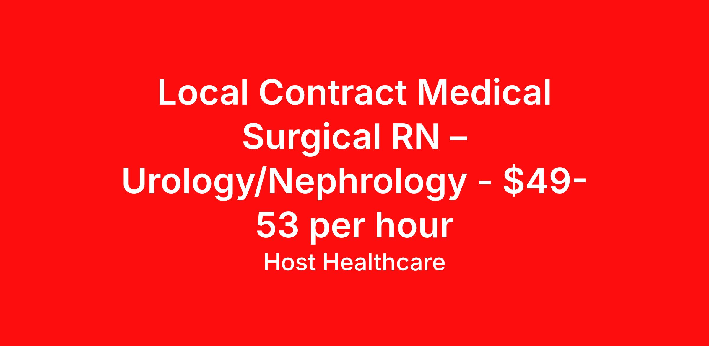 Local Contract Medical Surgical RN – Urology/Nephrology - $49-53 per hour