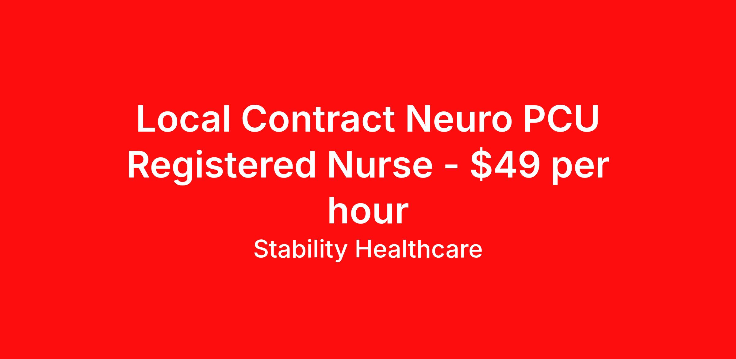 Stability Healthcare is seeking a local contract nurse RN Neuro PCU - Progressive Care Unit for a local contract nursing job in Greensboro, North Carolina. Job Description & Requirements Specialty: Neuro PCU - Progressive Care Unit Discipline: RN Duration: 13 weeks 36 hours per week Shift: 12 hours, days Employment Type: Local Contract Stability Healthcare is looking for a Tele Step-Down RN contract position in Greensboro, NC. The PCU nurse is sometimes also called a step-down nurse and the PCU is also known as cardiac stepdown, medical stepdown, neuro stepdown, surgical stepdown and ER holding. PCU nursing jobs traditionally operate between the levels of general and ICU care, and more recently, in the field of critical care, as well. *$600 travel bonus *Day 1 health insurance with United Healthcare *PTO plan start accruing on day 1, use during contract or cash out at the end! *Guaranteed stipend if facility calls you off *Extra hour bonus earn an additional hourly bonus for working over your weekly contracted hours Stability Job ID L-825853. Pay package is based on 12 hour shifts and 36 hours per week (subject to confirmation) with tax-free stipend amount to be determined. Posted job title: Tele Step-Down About Stability Healthcare Stability Healthcare was founded in 2009, with the mission of becoming the best Travel Nursing Agency in California. We have been rated one of the top travel nursing agencies and offer our nurses the highest paying travel nursing jobs available. We have access to the best travel assignments from 1000’s of facilities. You can start the year off in sunny California, spend the Spring in the Colorado Rockies, enjoy the Summer in the Mid-West, experience the change of seasons in Boston and New York, and hit the beaches of Florida in the winter. Our Nurses work in the best hospitals and health systems in the country. Benefits Guaranteed Hours Benefits start day 1