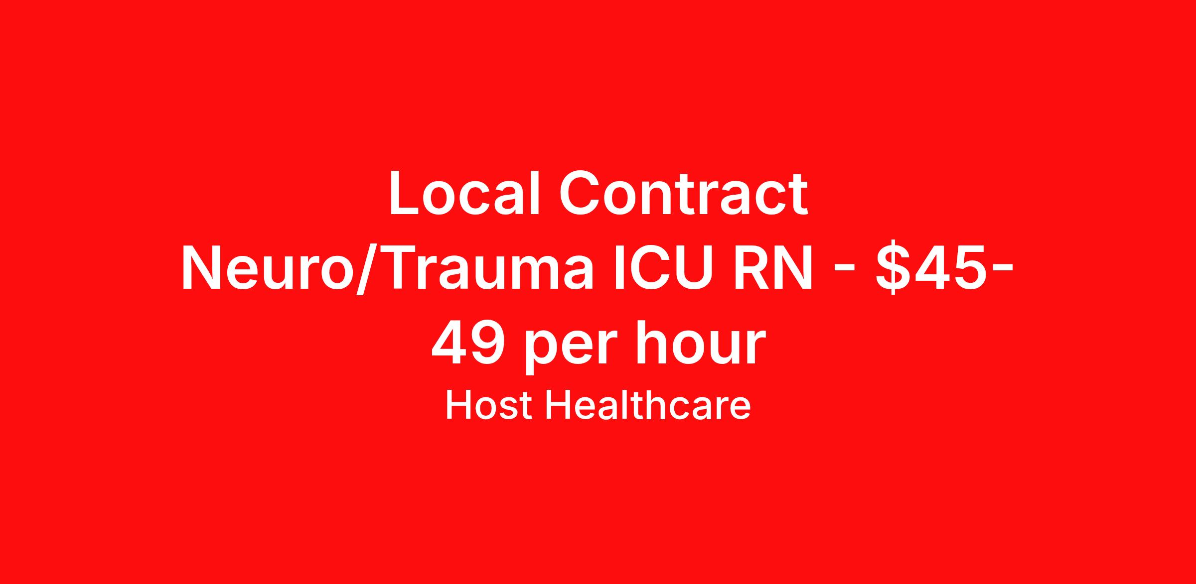 Host Healthcare is seeking a local contract nurse RN ICU - Intensive Care Unit for a local contract nursing job in Evansville, Indiana. Job Description & Requirements Specialty: ICU - Intensive Care Unit Discipline: RN Start Date: 04/13/2026 Duration: 13 weeks 36 hours per week Shift: 12 hours, nights Employment Type: Local Contract Host Healthcare Job ID La1fVX000002vXvoYAE. Pay package is based on 12 hour shifts and 36 hours per week (subject to confirmation) with tax-free stipend amount to be determined. Posted job title: RN - ICU About Host Healthcare At Host Healthcare, we provide a truly comfortable experience as you explore your travel nursing, therapy, or allied career. We make your travel healthcare journey easy by taking care of all the details, so you don’t have to. We are on a mission to help others live better and we do this by helping the healers of the world be as comfortable as possible. With access to tens of thousands of travel nursing, therapy, and allied jobs in all 50 states, our responsive and friendly recruiters find your dream position based on what’s important to you. During your assignment, get access to premium benefits, including Day 1 medical that continues up to 30 days between assignments, 401K matching, travel reimbursements, dedicated housing support, and more. We also offer 24/7 support from our team and access to our on-staff clinicians so you can feel comfortable and confident throughout your entire assignment. Travel comfortably with Host Healthcare. Benefits Referral bonus School loan reimbursement Vision benefits Wellness and fitness programs Company provided housing options License and certification reimbursement Life insurance Medical benefits Mileage reimbursement Pet insurance Discount program Employee assistance programs Guaranteed Hours Health savings account Holiday Pay 401k retirement plan Continuing Education Dental benefits