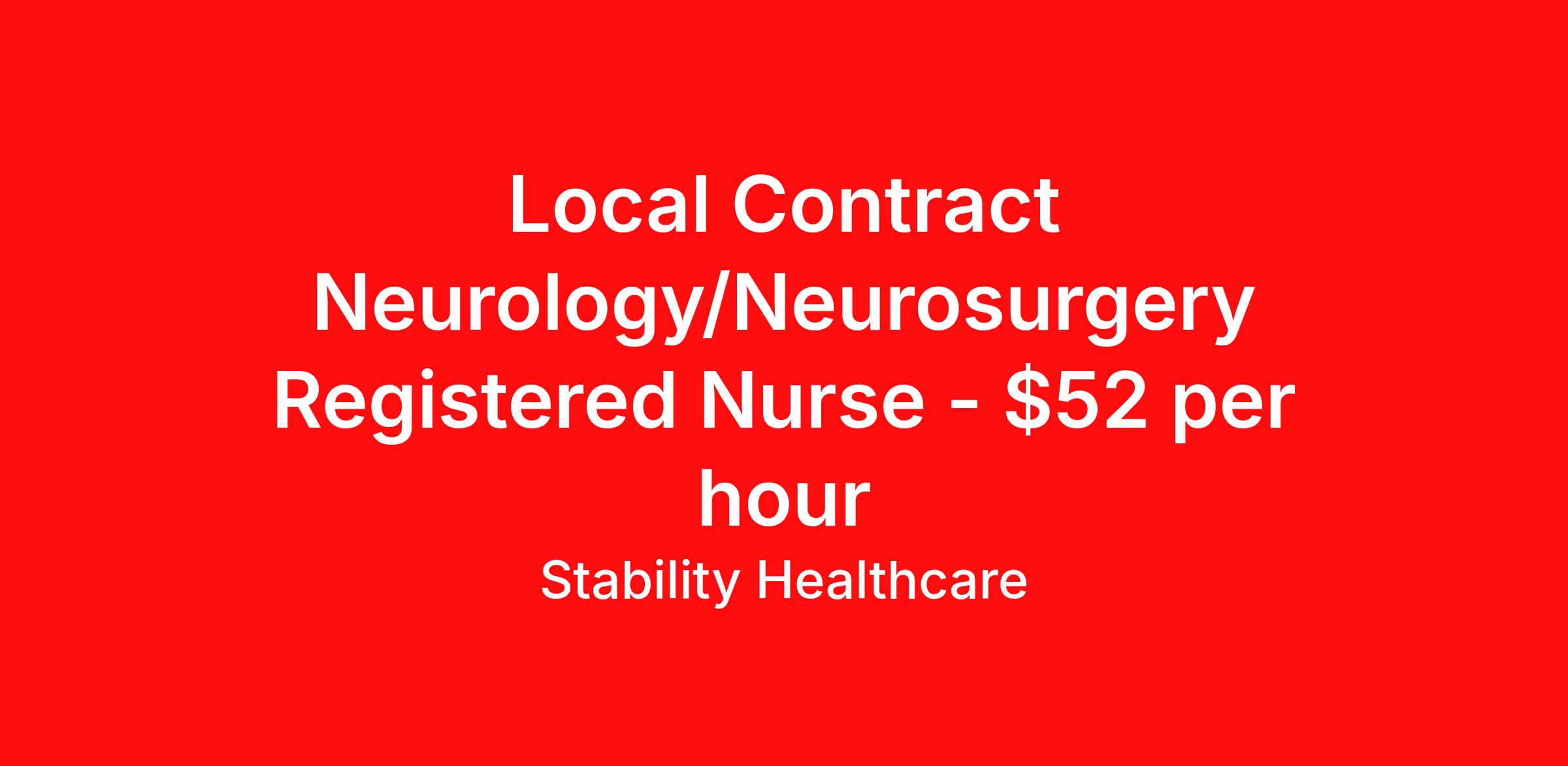 Stability Healthcare is seeking a local contract nurse RN Neurology for a local contract nursing job in Newburgh, Indiana. Job Description & Requirements Specialty: Neurology Discipline: RN Duration: 13 weeks 36 hours per week Shift: 12 hours, nights Employment Type: Local Contract Stability Healthcare is looking for a Med-Surg RN contract position in Newburgh, IN. The majority of hospitalized patients are admitted to M/S either directly or after surgery. M/S is also where patients who have been in critical care (ICU) are transferred when they no longer need critical care but still require nursing care. *$600 travel bonus *Day 1 health insurance with United Healthcare *PTO plan start accruing on day 1, use during contract or cash out at the end! *Guaranteed stipend if facility calls you off *Extra hour bonus earn an additional hourly bonus for working over your weekly contracted hours Stability Job ID L-807324. Pay package is based on 12 hour shifts and 36 hours per week (subject to confirmation) with tax-free stipend amount to be determined. Posted job title: Med-Surg About Stability Healthcare Stability Healthcare was founded in 2009, with the mission of becoming the best Travel Nursing Agency in California. We have been rated one of the top travel nursing agencies and offer our nurses the highest paying travel nursing jobs available. We have access to the best travel assignments from 1000’s of facilities. You can start the year off in sunny California, spend the Spring in the Colorado Rockies, enjoy the Summer in the Mid-West, experience the change of seasons in Boston and New York, and hit the beaches of Florida in the winter. Our Nurses work in the best hospitals and health systems in the country. Benefits Guaranteed Hours Benefits start day 1