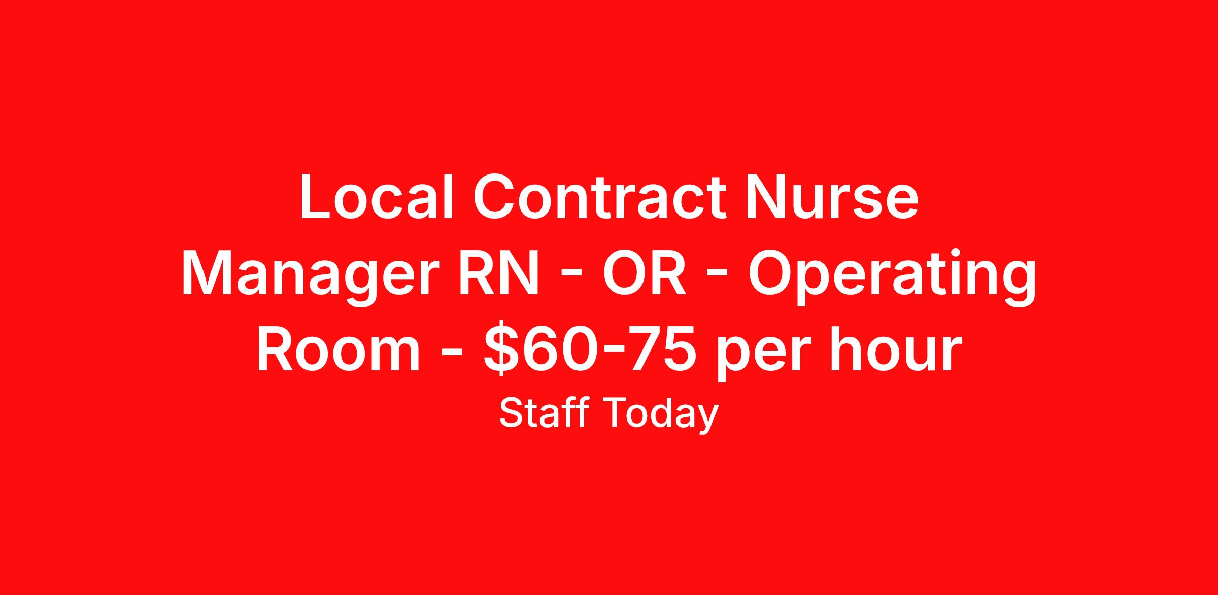 Local Contract Nurse Manager RN - OR - Operating Room - $60-75 per hour