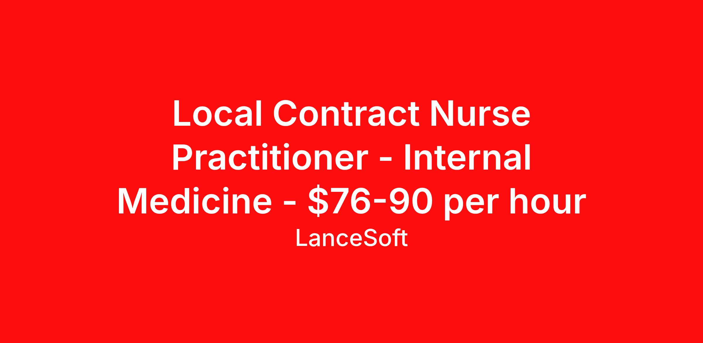 Local Contract Nurse Practitioner - Internal Medicine - $76-90 per hour