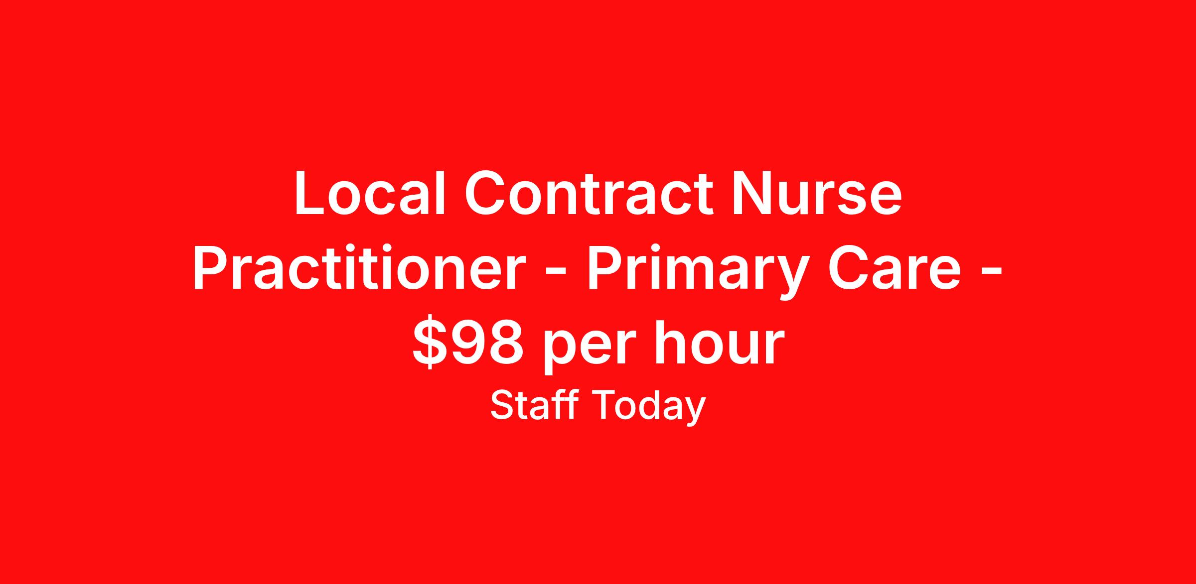 Local Contract Nurse Practitioner - Primary Care - $98 per hour