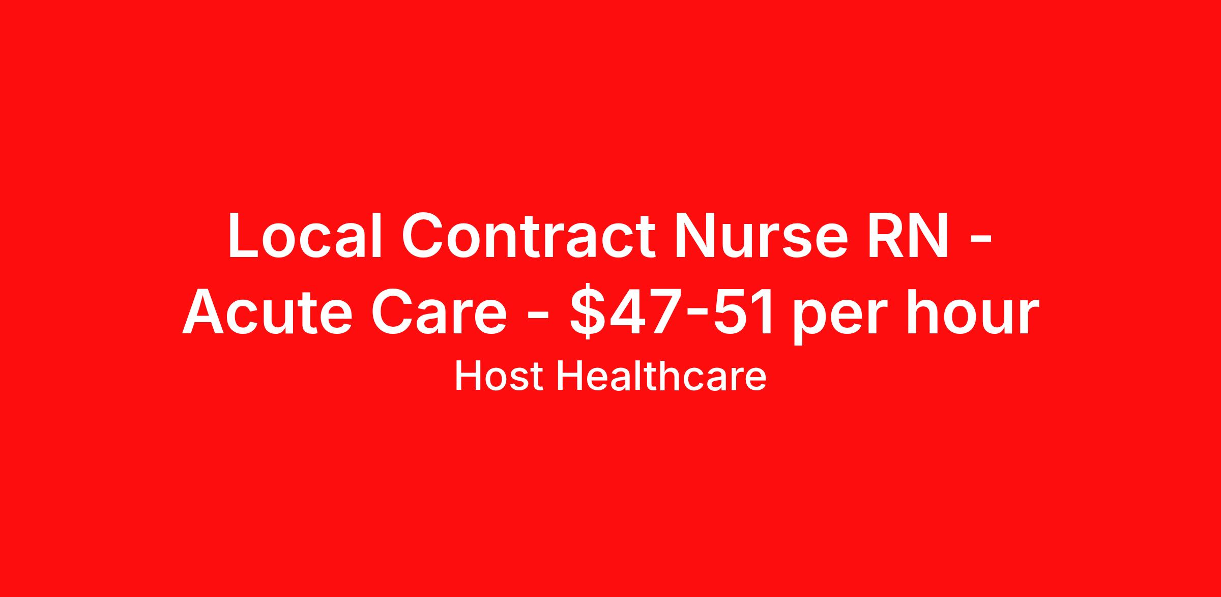 Host Healthcare is seeking a local contract nurse RN Acute Care for a local contract nursing job in Syracuse, New York. Job Description & Requirements Specialty: Acute Care Discipline: RN Start Date: 04/04/2026 Duration: 13 weeks 40 hours per week Shift: 10 hours, days Employment Type: Local Contract Host Healthcare Job ID La1fVX000002xM9pYAE. Pay package is based on 10 hour shifts and 40 hours per week (subject to confirmation) with tax-free stipend amount to be determined. Posted job title: RN - Acute Care Hospital About Host Healthcare At Host Healthcare, we provide a truly comfortable experience as you explore your travel nursing, therapy, or allied career. We make your travel healthcare journey easy by taking care of all the details, so you don’t have to. We are on a mission to help others live better and we do this by helping the healers of the world be as comfortable as possible. With access to tens of thousands of travel nursing, therapy, and allied jobs in all 50 states, our responsive and friendly recruiters find your dream position based on what’s important to you. During your assignment, get access to premium benefits, including Day 1 medical that continues up to 30 days between assignments, 401K matching, travel reimbursements, dedicated housing support, and more. We also offer 24/7 support from our team and access to our on-staff clinicians so you can feel comfortable and confident throughout your entire assignment. Travel comfortably with Host Healthcare. Benefits Referral bonus School loan reimbursement Vision benefits Wellness and fitness programs Company provided housing options License and certification reimbursement Life insurance Medical benefits Mileage reimbursement Pet insurance Discount program Employee assistance programs Guaranteed Hours Health savings account Holiday Pay 401k retirement plan Continuing Education Dental benefits