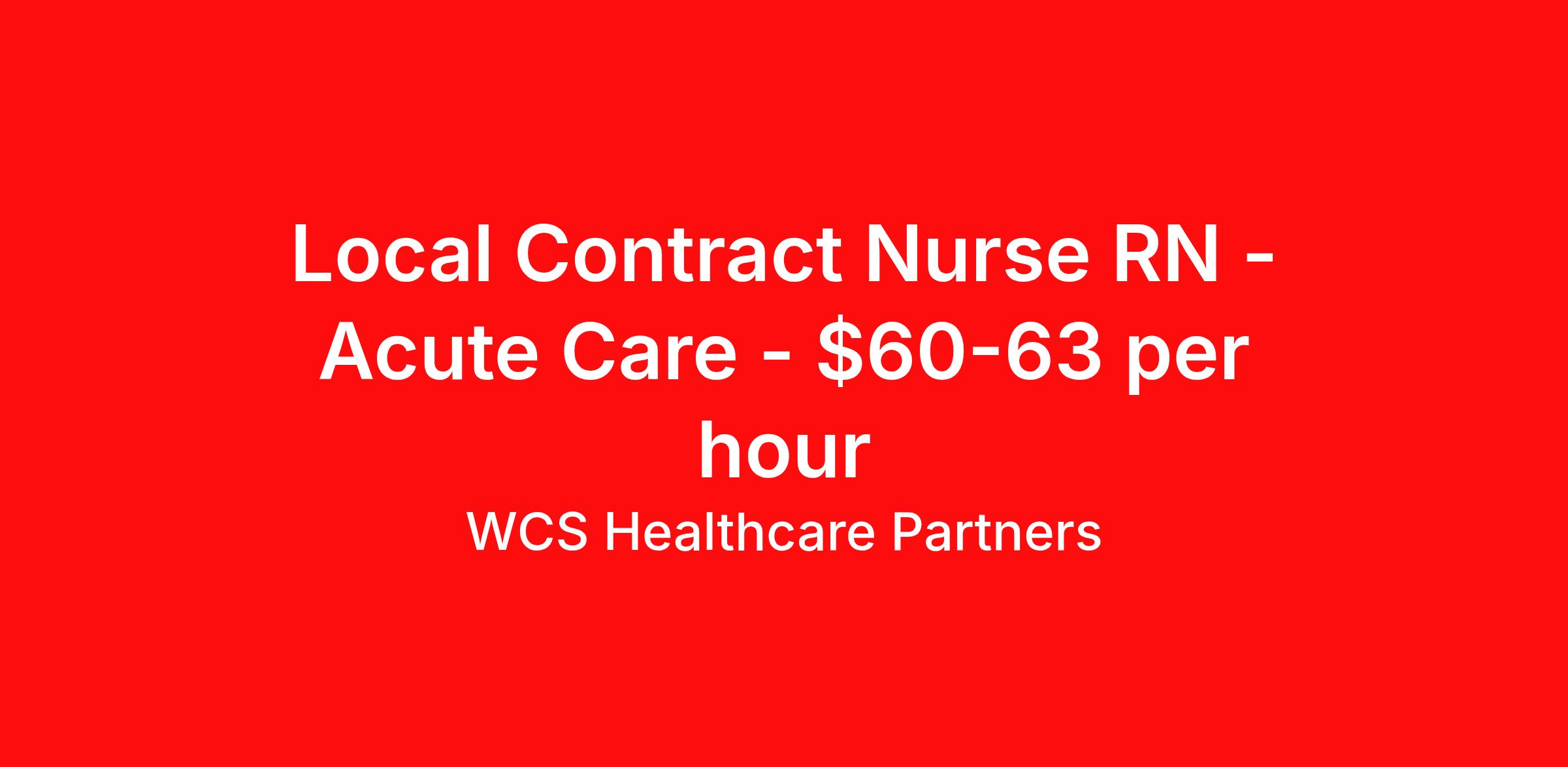WCS Healthcare Partners is seeking a local contract nurse RN Acute Care for a local contract nursing job in Boston, Massachusetts. Job Description & Requirements Specialty: Acute Care Discipline: RN Duration: 13 weeks 36 hours per week Shift: 12 hours, nights Employment Type: Local Contract WCS Healthcare is currently seeking a Post Anesthesia Nurse for a contract assignment at a Prestigious Hospital in Boston, MA. Job Function: Night Shift. 7pm to 7am. Provides post-operative nursing care to the patient in an individual, emotionally supportive manner, consistent with any directions or orders given by the anesthesiologist and/or attending physician. Documents all nursing activities and writes a nursing discharge note when the anesthesiologist documents that the patient is ready to be transferred to the progressive recovery room. Ensures that all needed equipment and supplies are stocked and readily available. Monitor’s and documents the patient’s vital signs and level of consciousness as per nursing procedure. Assists the anesthesiologist or other attending physician as needed. Job Requirements: 3 years of experience. 1 year of travel experience. 1 years Academic Medical Center experience required. MA License. BLS, ACLS, & PALS. Disclosure: The hourly rates and/or salaries listed may or may not reflect total compensation packages including bonus and fringe benefits, etc., nor are the advertisement(s) posted a guarantee of a certain compensation package for a position or bona fide offer of employment. All qualified applicants will receive consideration for employment without regard to race, color, religion, sex, sexual orientation, gender identity, national origin, or protected veteran status and will not be discriminated against on the basis of disability. ITAC1 LI-DNP 42318 White Cap Search Partners Job ID 42318. Posted job title: RN - PACU - Local Contract About WCS Healthcare Partners With WCS Healthcare Partners, every Job Seeker grows stronger, moving one step forward with each job placement. We take the time to get to know the needs and qualifications of each Healthcare professional to match you with the right clinical setting, patient population, merging your compensation and career goals with your desired work environment. Our recruiters are experts at navigating the dynamic nature of healthcare employers to get your resume in front of the right decision makers. NURSING ● Registered Nurses (RN) ● Licensed Practical Nurses (LPN) ● Travel Nursing ● Quality Assurance/Review, Performance Improvement, HEDIS ● Nursing Leadership ● Case Management ALLIED HEALTH ● Technologists: Medical, Laboratory, Cardiac, RadTech, X-Ray ● Therapy: Physical, Occupational and Speech Therapy ● Social Work: LCSW/LMSW, Case Management, Care Coordination ● Med Support: Medical Assistants, Phlebotomy, Surgical/Sterile Techs ● Pharmacists and Pharmacy Techs ● Dental Hygienist, Dental Assistants OPERATIONS & FINANCE ● Practice Management ● Clinical Operations ● Administrative Support ● Reception, Clerical, Call Center ● Claims Appeals/Denials/Reimbursement ● Insurance Pre-Authorizations ● Medical Billing/Coding Benefits 401k retirement plan Weekly pay