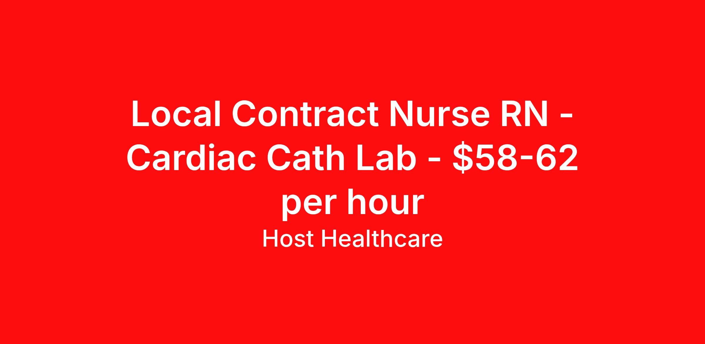 Local Contract Nurse RN - Cardiac Cath Lab - $58-62 per hour